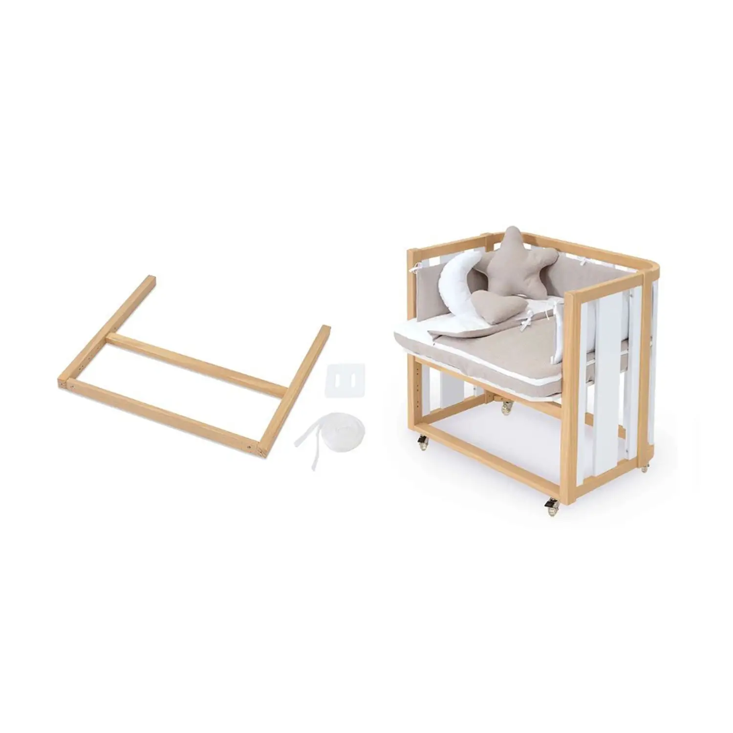 The Wood/White Side Bed Kit for Alondra 's Crea One/Three Crib is the ideal co-sleeping solution. It transforms your crib into a practical side-bed cradle, allowing you to keep your baby close during the night, facilitating nighttime breastfeeding and providing more peace of mind for you and your little one.