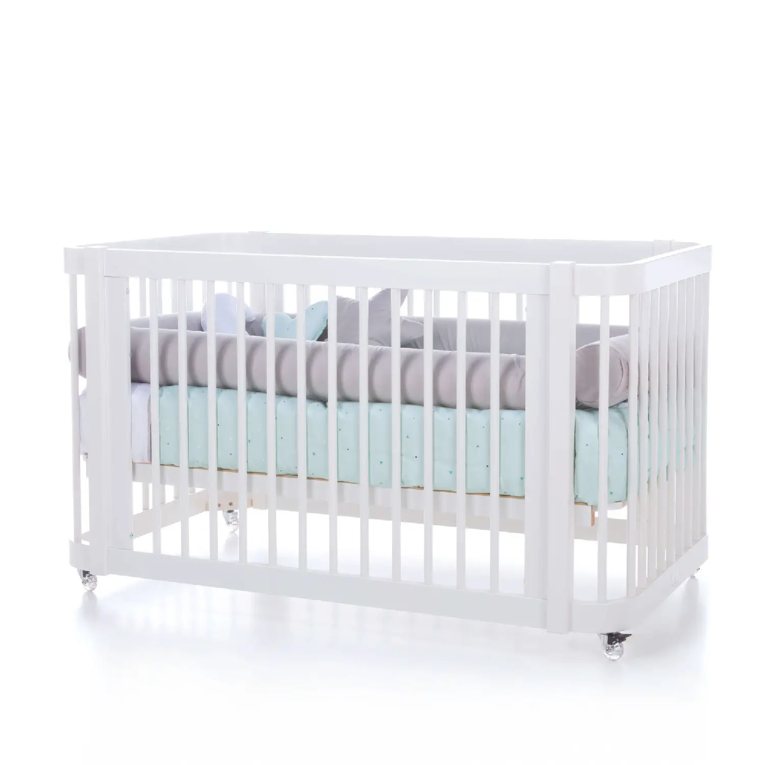 Between the ages of 2 and 3, when the child already has some independence, it is time to convert the crib into a Montessori bed, at ground level, by removing the large barrier and placing the junior barrier (included) so that the child can get in and out of the bed by himself. You can choose the bed with or without wheels.