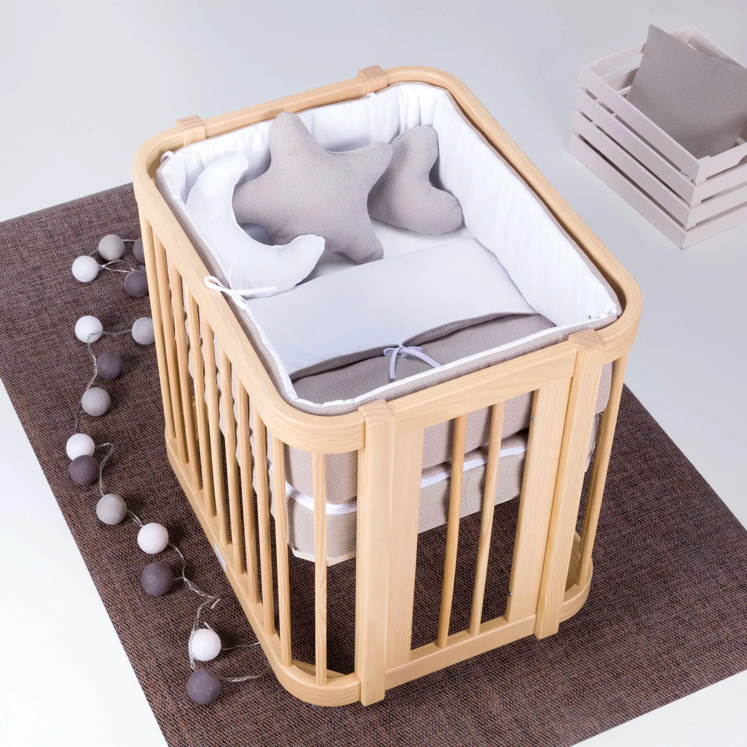 Convertible into 60×80 cm crib, desk and 70×140 cm crib without the help of additional elements