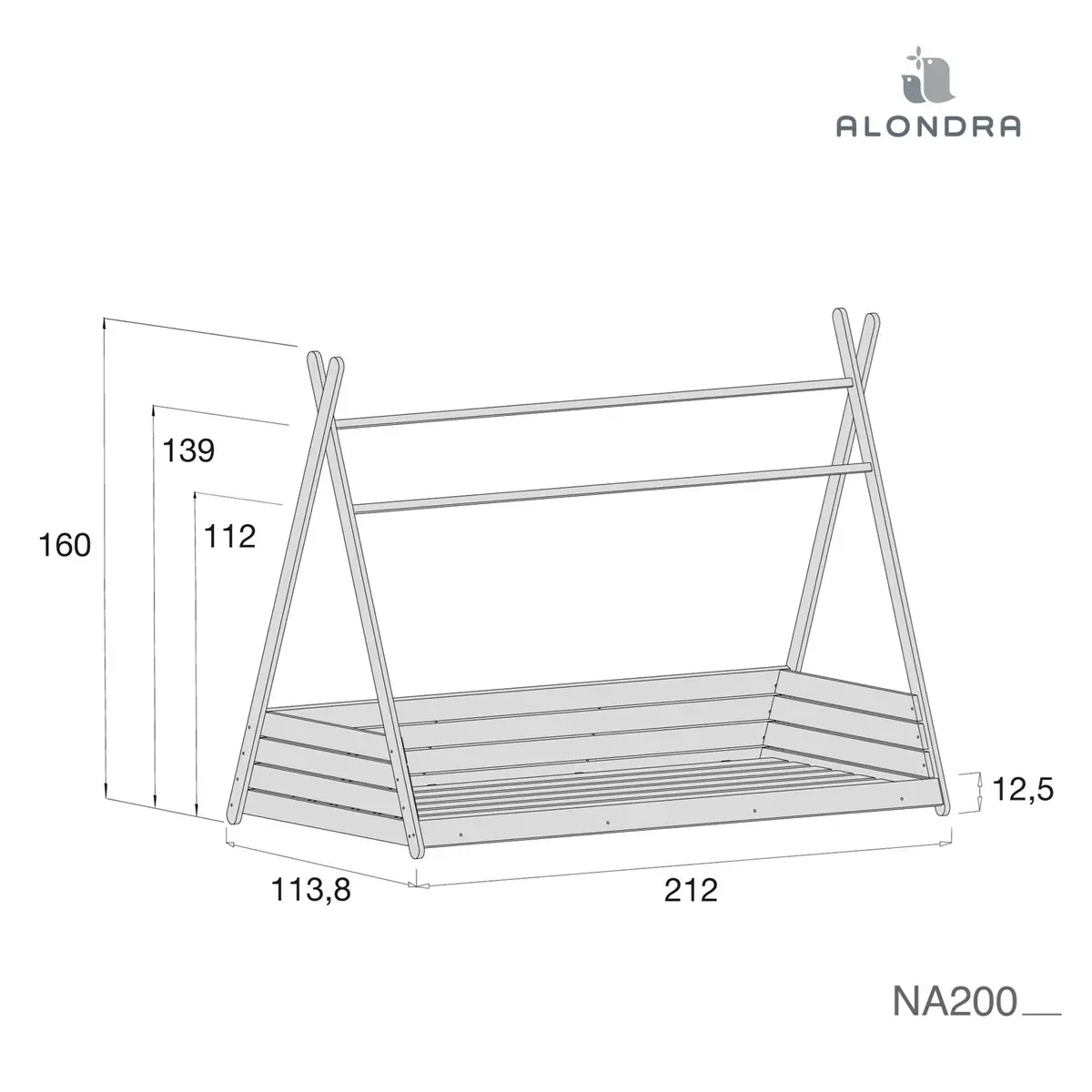 **Il letto è incluso di tenda è di un materasso delle dimensioni 90x200 cm con uno spessore 22 cm, per garantire il massimo comfort e una perfetta aderenza alla struttura. Gli elementi decorativi non sono inclusi, per lasciare spazio alla personalizzazione.