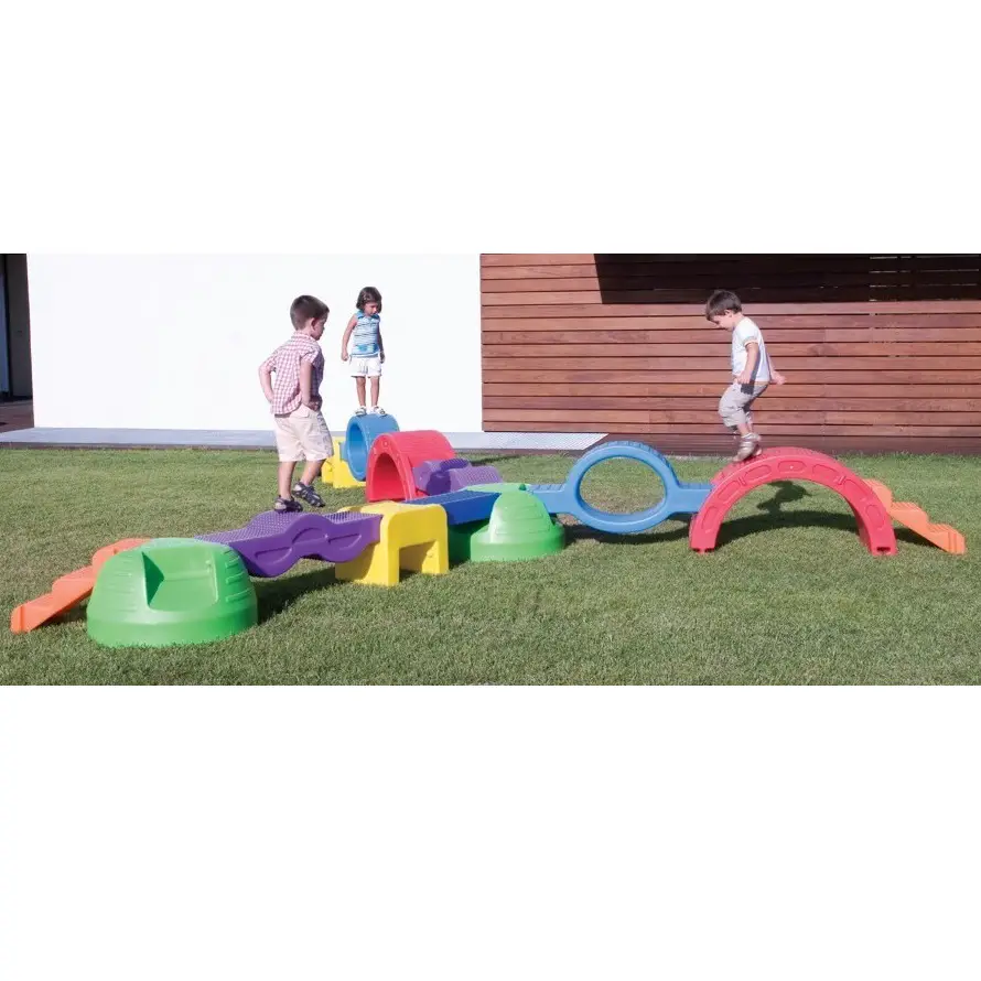 By combining the different shapes of the elements, a variety of obstacle courses can be created, stimulating children's agility, balance and coordination. By placing the elements in different ways, children can create unique and personalized paths, expanding their motor experiences.