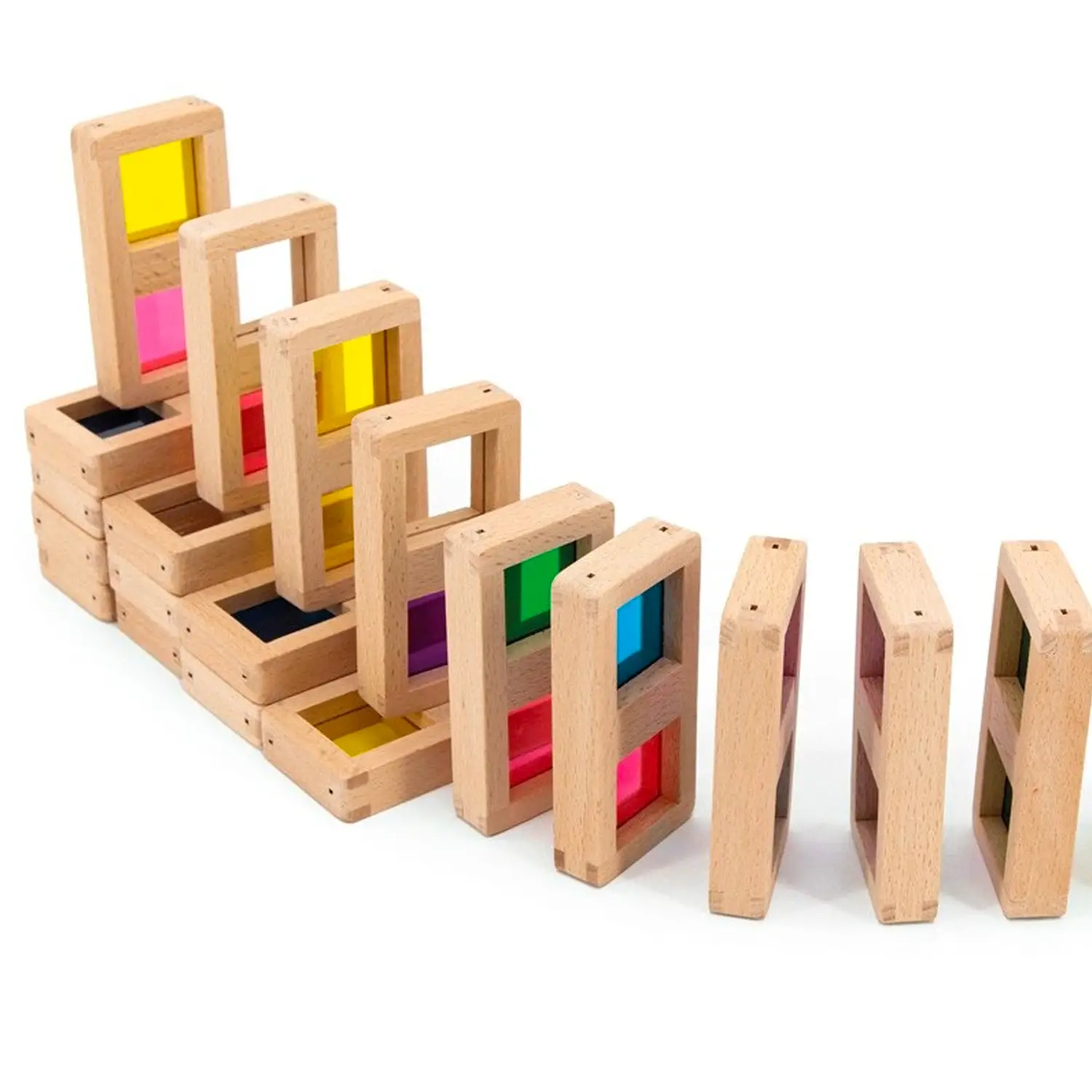 - ✅ 28 tessere in legno con inserti traslucidi in 7 colori vivaci