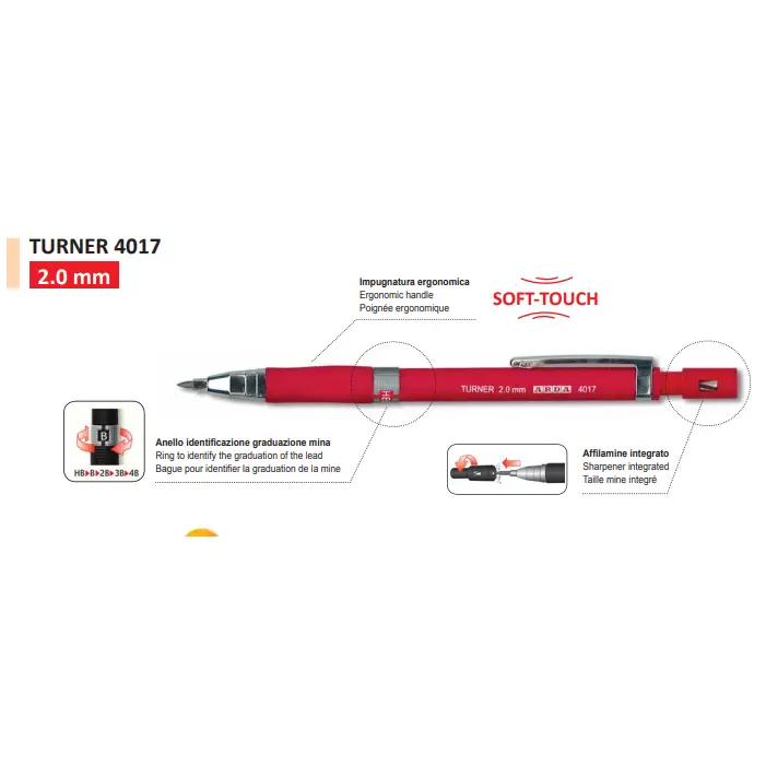 Il portamine Turner 4017 ARDA da 2 mm rappresenta la perfetta combinazione tra innovazione, funzionalità e design. Un accessorio indispensabile per chi cerca un portamine professionale affidabile, ideale per scuola, ufficio tecnico e studi creativi.
