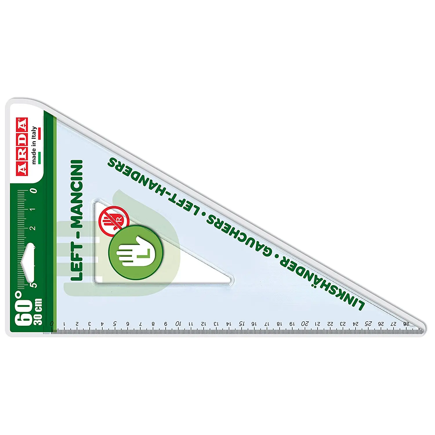 Progettata specificamente per mancini, questa squadra ARDA da 60° e 30 cm combina precisione, comfort e sicurezza, rendendo il disegno tecnico scolastico e professionale più semplice e accurato.