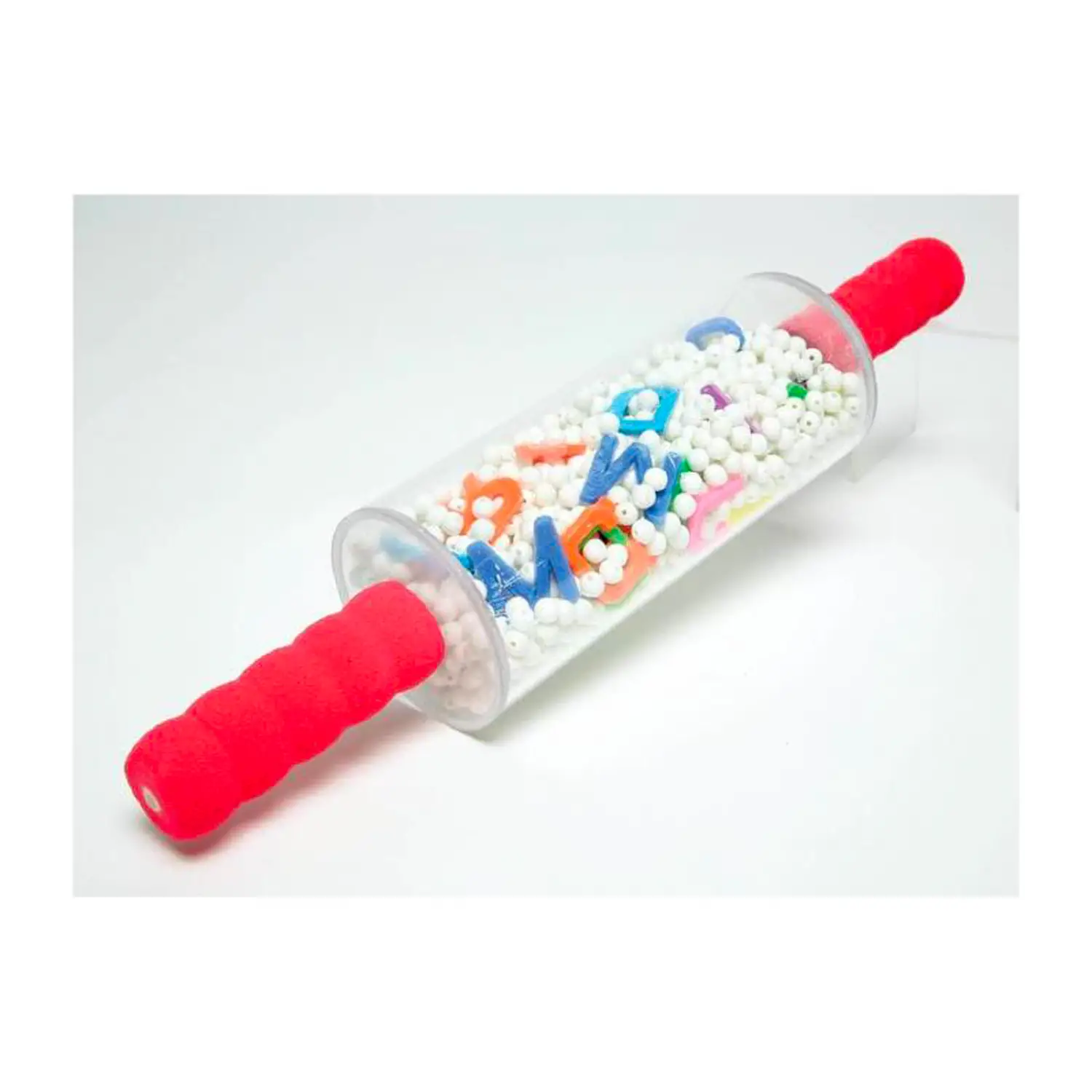 - ✅ Mattarello trasparente con perline bianche e lettere colorate per esplorare l'alfabeto in modo ludico.