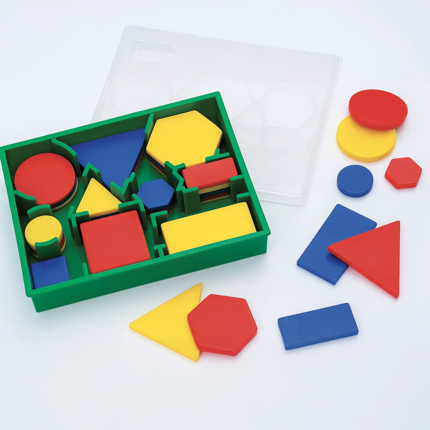 Logic Blocks in Case, 60 Plastic Pieces for Classification and Geometry