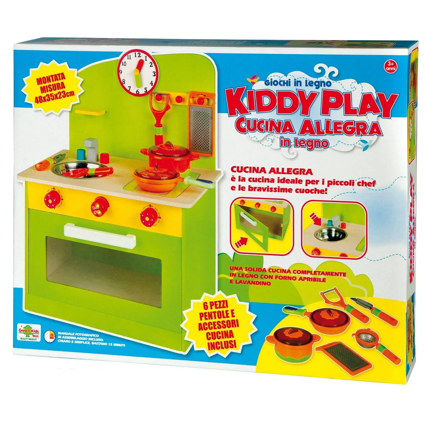 - ✅ Cucina in legno robusta e sicura, ideale per tante ore di gioco attivo e creativo.