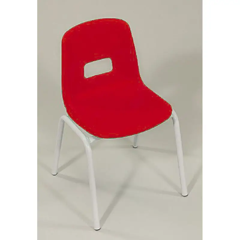 Sedia in polipropilene color rosso, seduta h 45 cm, per adulti. Struttura in tubolare d'acciaio mm.20x1,5. Puntali in plastica antirumore. Dim. cm. 40x40x45/77h