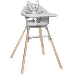 Meals are easy with Stokke Clikk, suitable from 6 months to 3 years. Three easy-to-fit configurations offer optimal back and leg support for comfort and ergonomics at any age. Scandinavian design made with FSC®-certified solid beech wood legs.