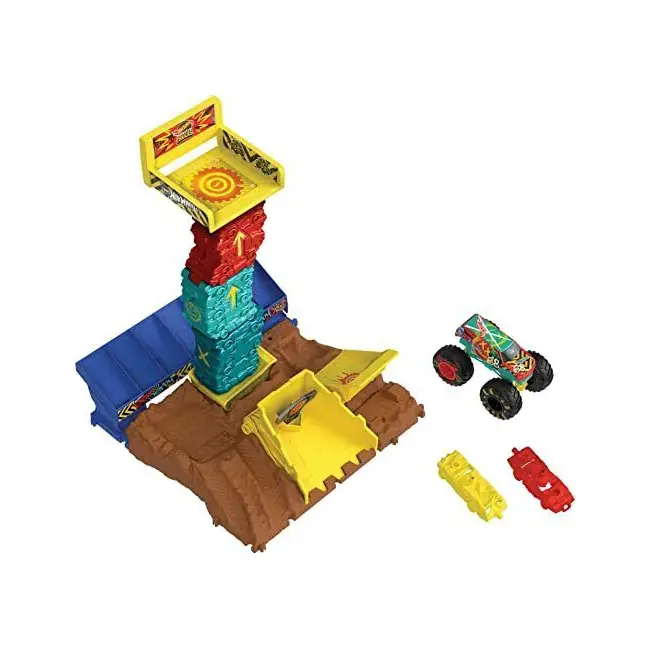 Con la sfida Hot Wheels Monster Trucks Arena Smashers Demo Derby Car Jump, colpisci i palchi di dimensioni mostruose e atterra sul luogo dell’incidente per distruggere la torre delle auto distrutte.
