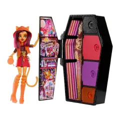 Unique Style and Over 125 Looks: With bright pink makeup and details, Draculaura is not afraid to shine. The wide range of accessories, from a hoodie to a computer, allows her to create over 125 combinations of looks. Everything stows easily in the coffin-shaped cabinet, ready for new adventures.