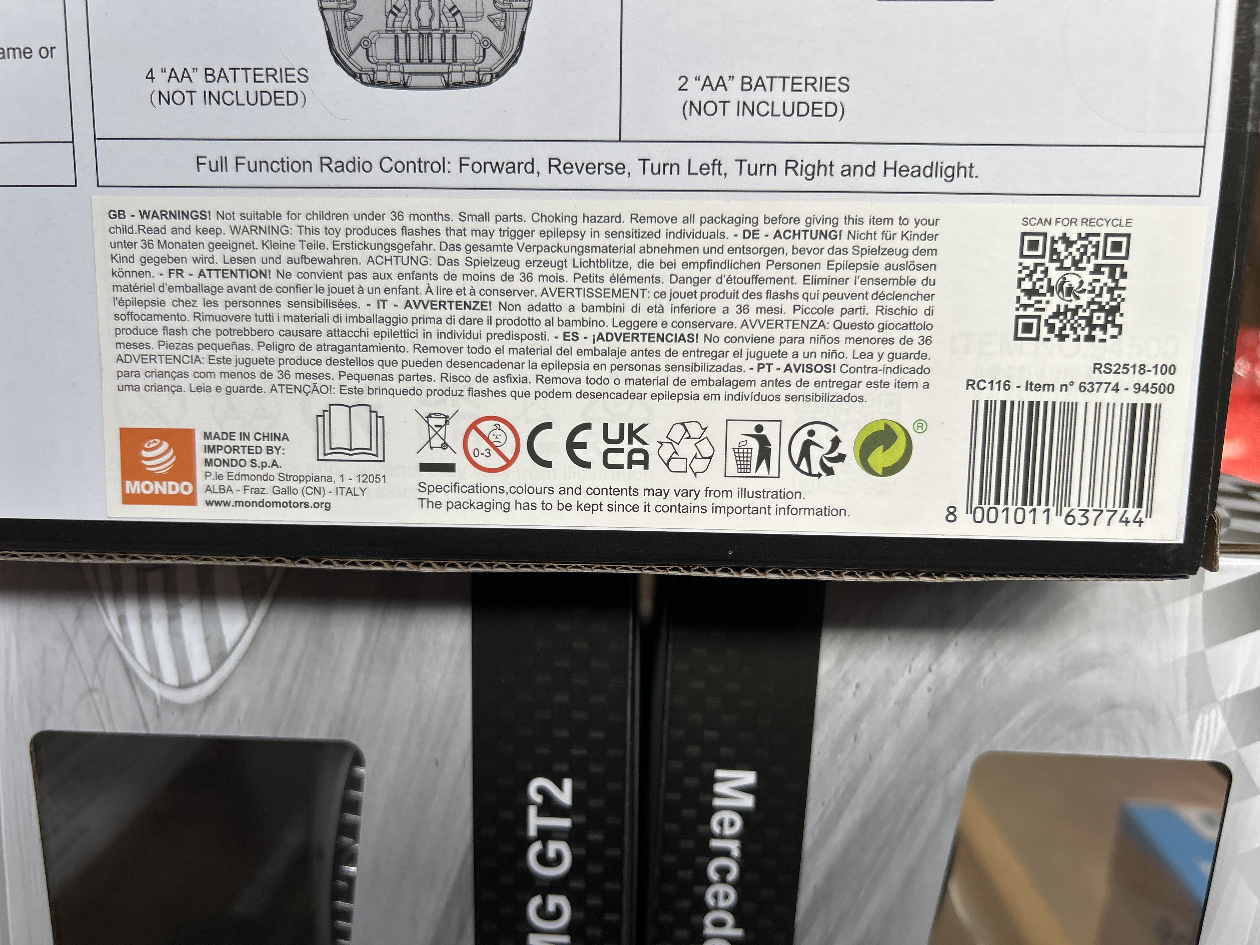Performance and Control: - 2.4 GHz Frequency: Interference-free driving, even with multiple models running at the same time. - Full Function Sports Controller: Maximum control to move in every direction and reach speeds of up to 10 km/h, for an exciting driving experience.