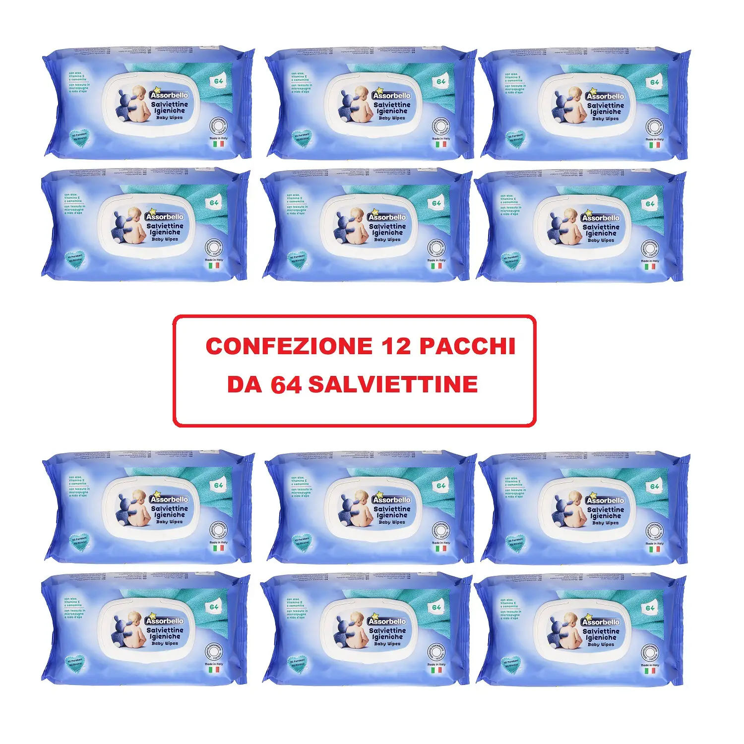 Salviettine Assorbello Per L'igene Del Bambino Con Tappo Dispenser 64 Pz - conf. 12 pz