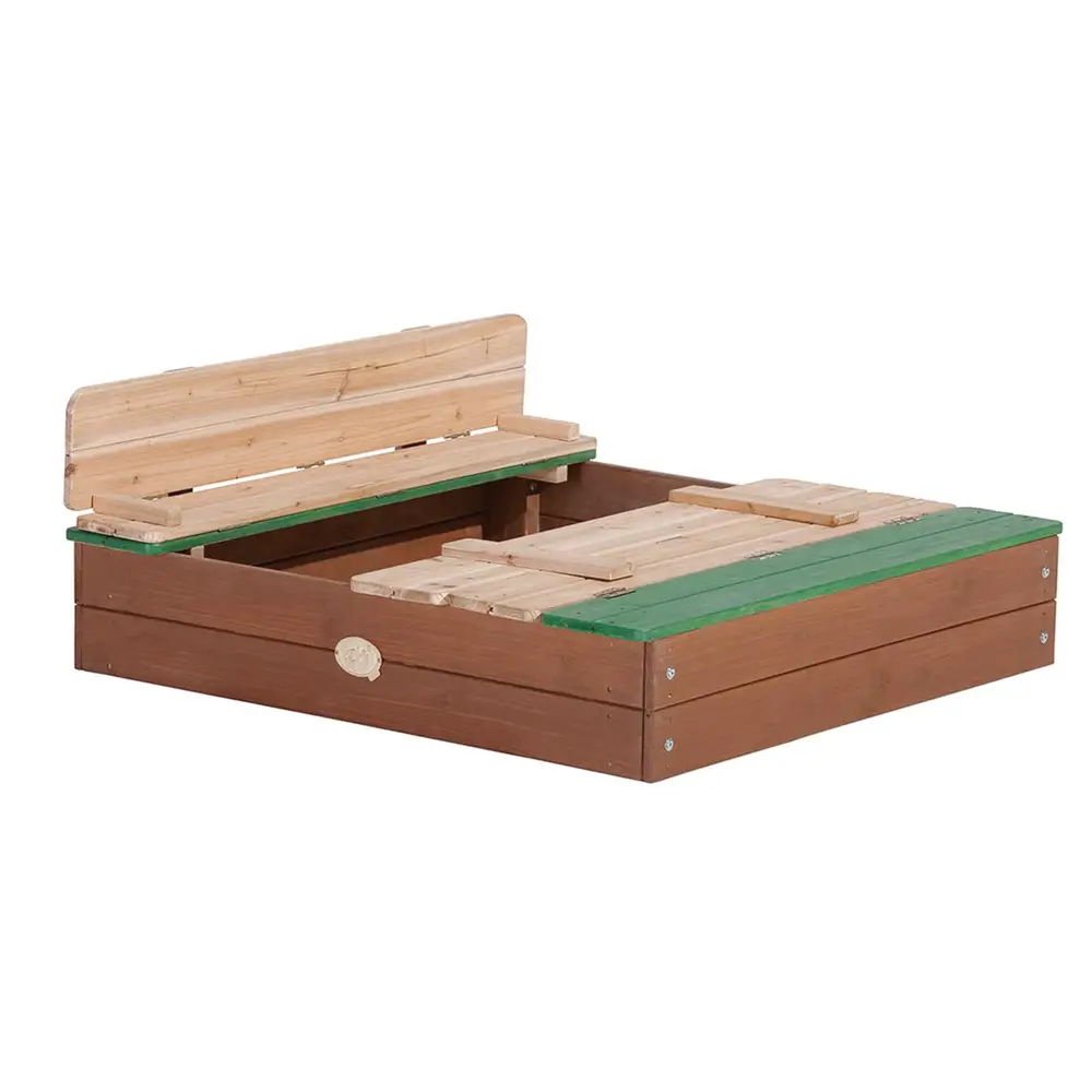 Il coperchio si trasforma in due comode panche, proteggendo la sabbia quando è chiusa e offrendo seduta durante il gioco.Compatta ma Capiente: