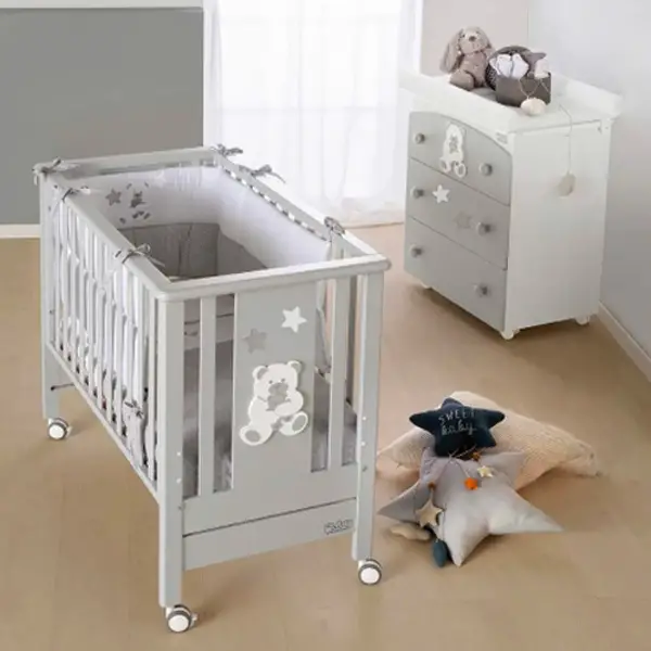 della sponda a scomparsa, si affianca al letto di mamma e papà, una vera e propria CULLA che permette di controllare il bebè durante il sonno. Come LETTINO