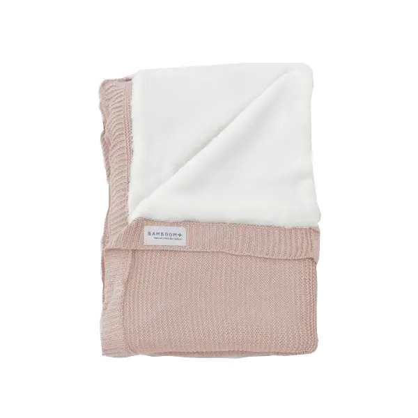 Knitted Blanket 75x100cm. Organic Bamboo and with a Pink Plush Side