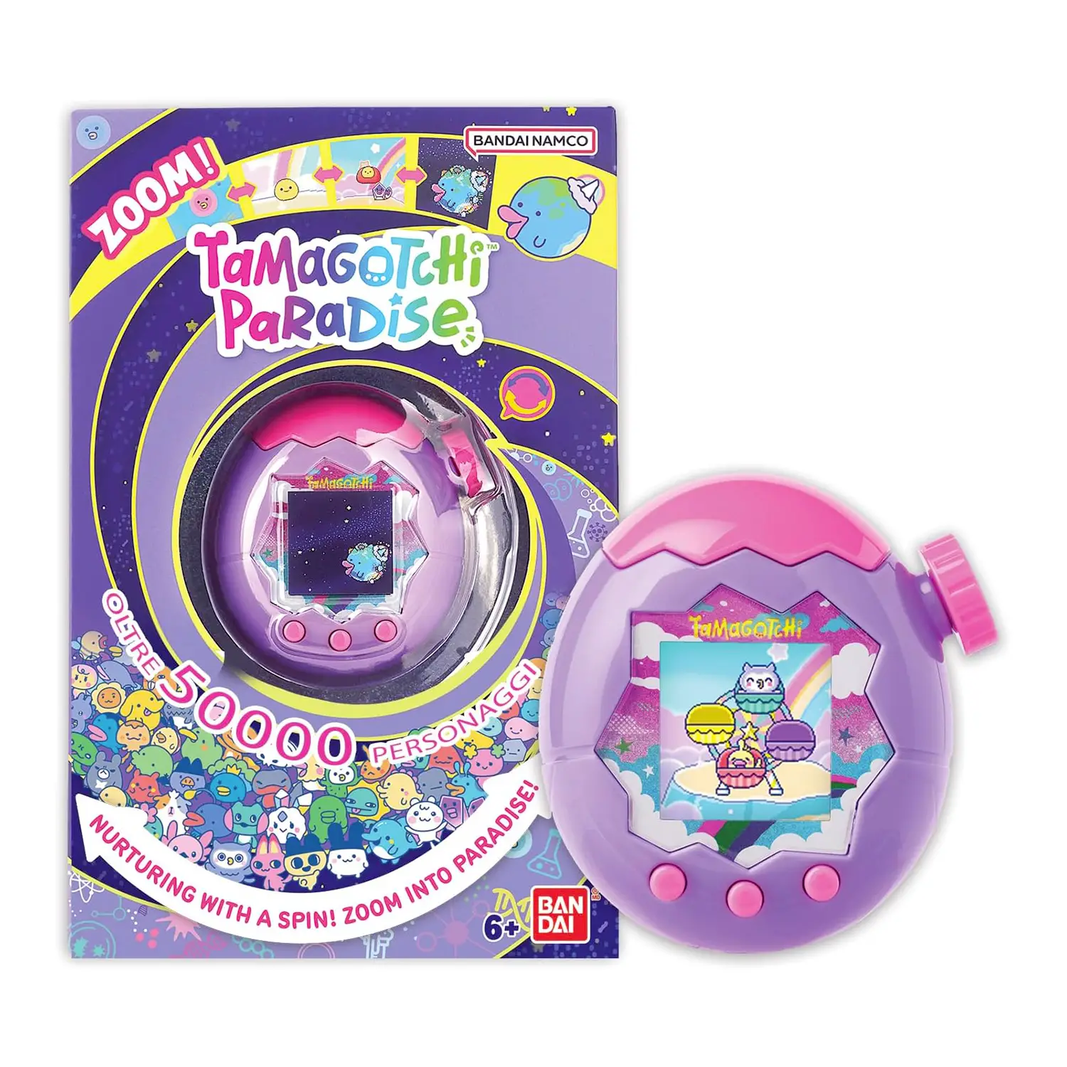 Tamagotchi Paradise Animale Domestico Virtuale - Cielo Scopri l’emozione di crescere il tuo Tamagotchi. Un cult anni ‘90, il modello Cielo offre un’esperienza di gioco unica e coinvolgente. Design Viola e Rosa del Tamagotchi Cielo Il Tamagotchi Cielo si distingue per il suo design accattivante. I colori viola e rosa rendono l’esperienza visiva un vero piacere. Interazioni Sociali e Connessioni Connettiti con gli amici per vedere i vostri Tamagotchi interagire. Sperimenta amicizie o scontri in un’avventura social. Oltre 50 Personaggi e Mini-giochi Sblocca e combina oltre 50 personaggi Tamagotchi. Divertiti con mini-giochi e nuove attività di accudimento.