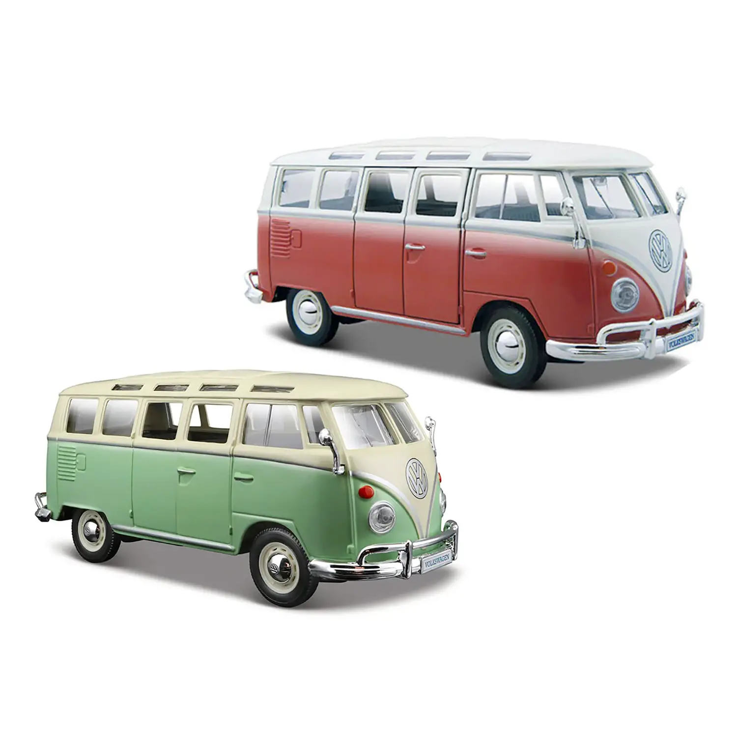 - ✅ Modellino Volkswagen Van Samba in scala 1:24, fedele riproduzione del classico furgone tedesco.