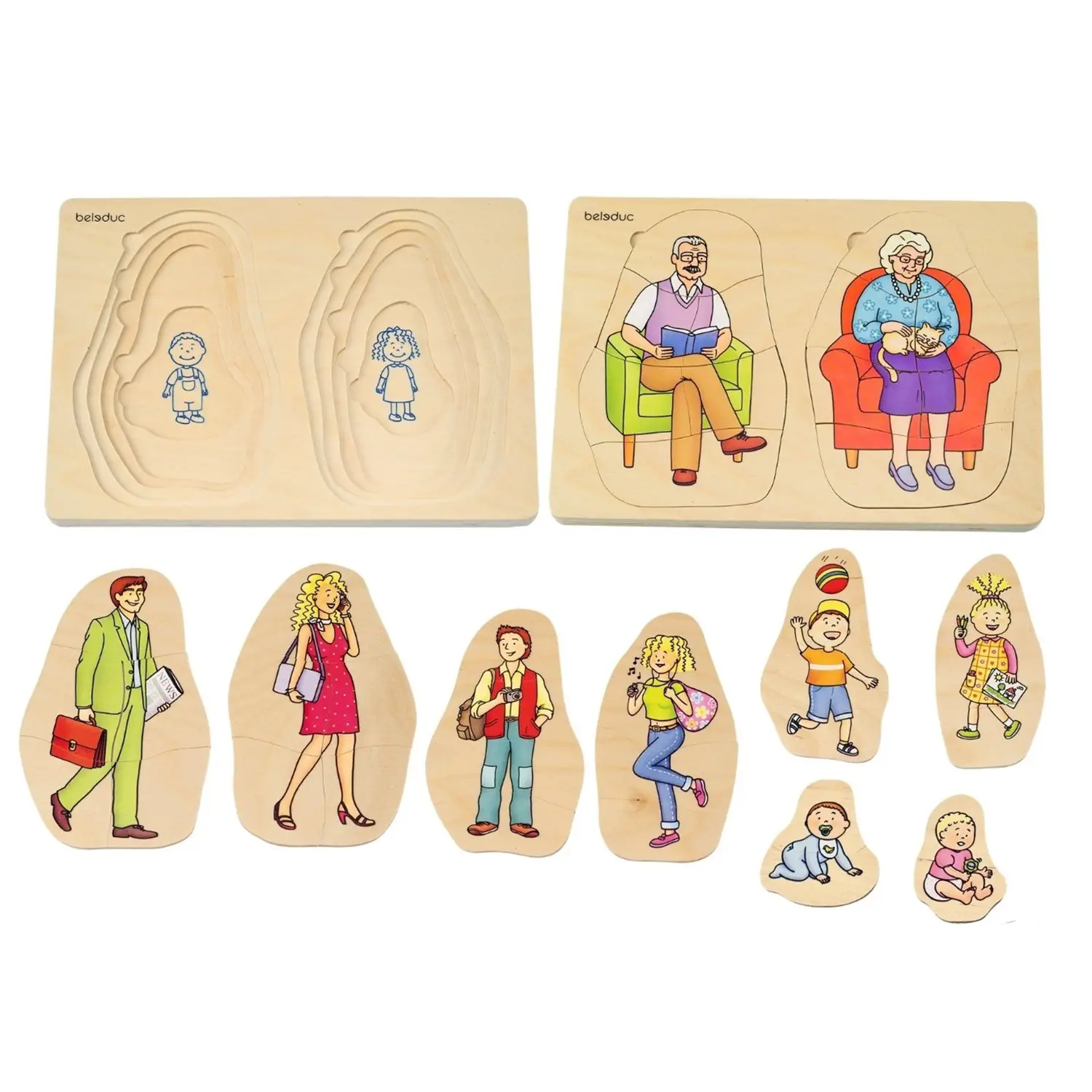 - ✅ Multi-level wooden puzzle with 5 stackable scenarios, each representing a stage of life.