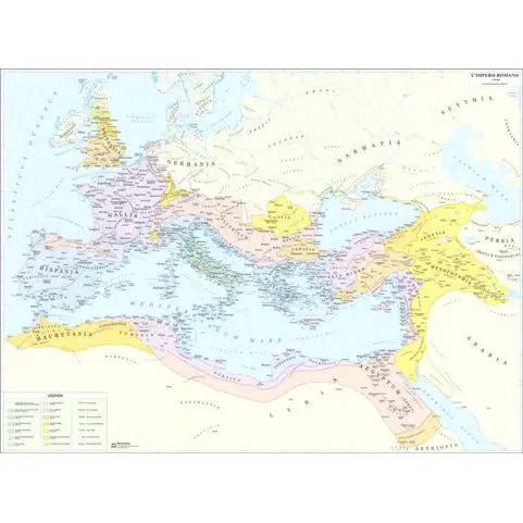 Map with territorial representation of a geographical area in relation to important and fundamental historical periods.