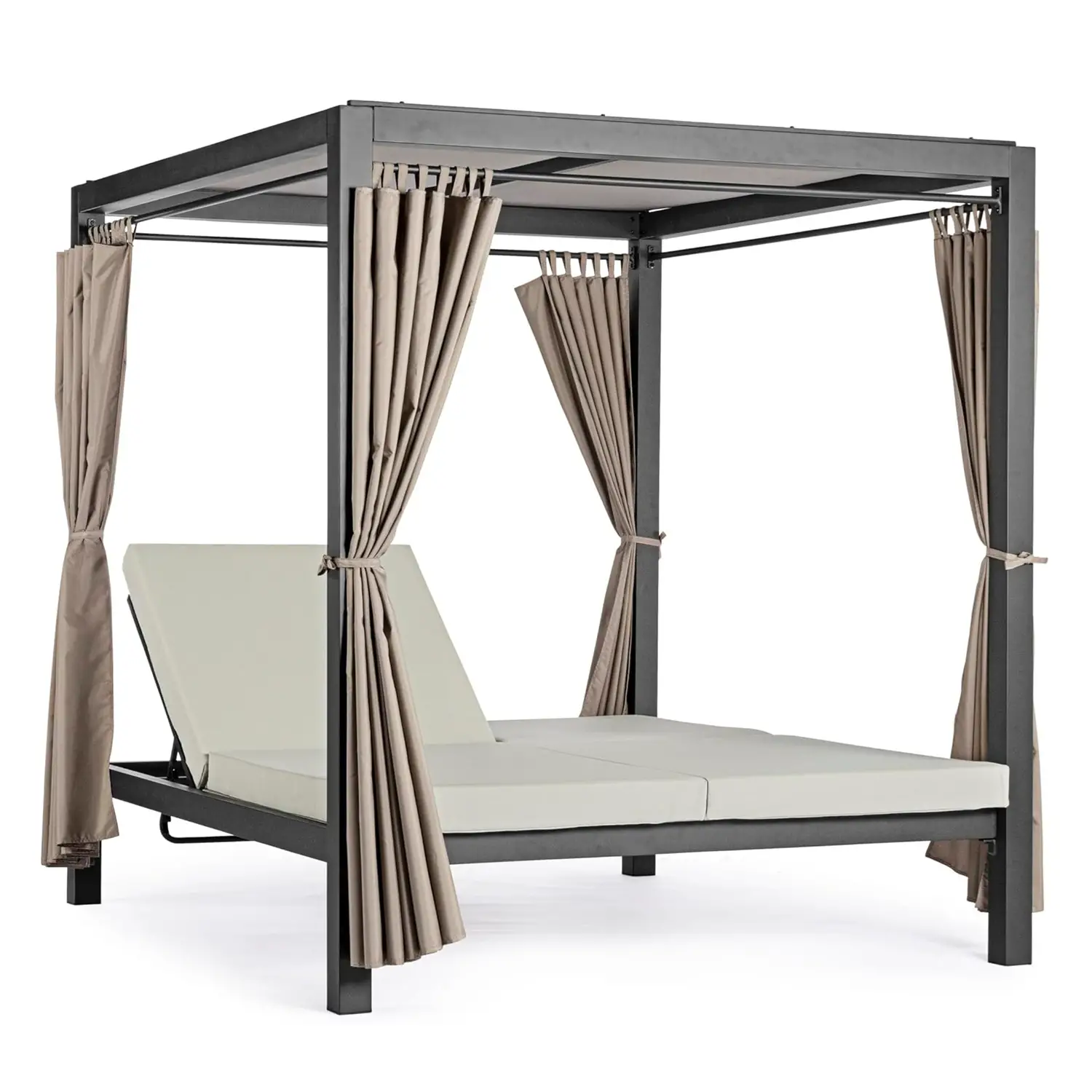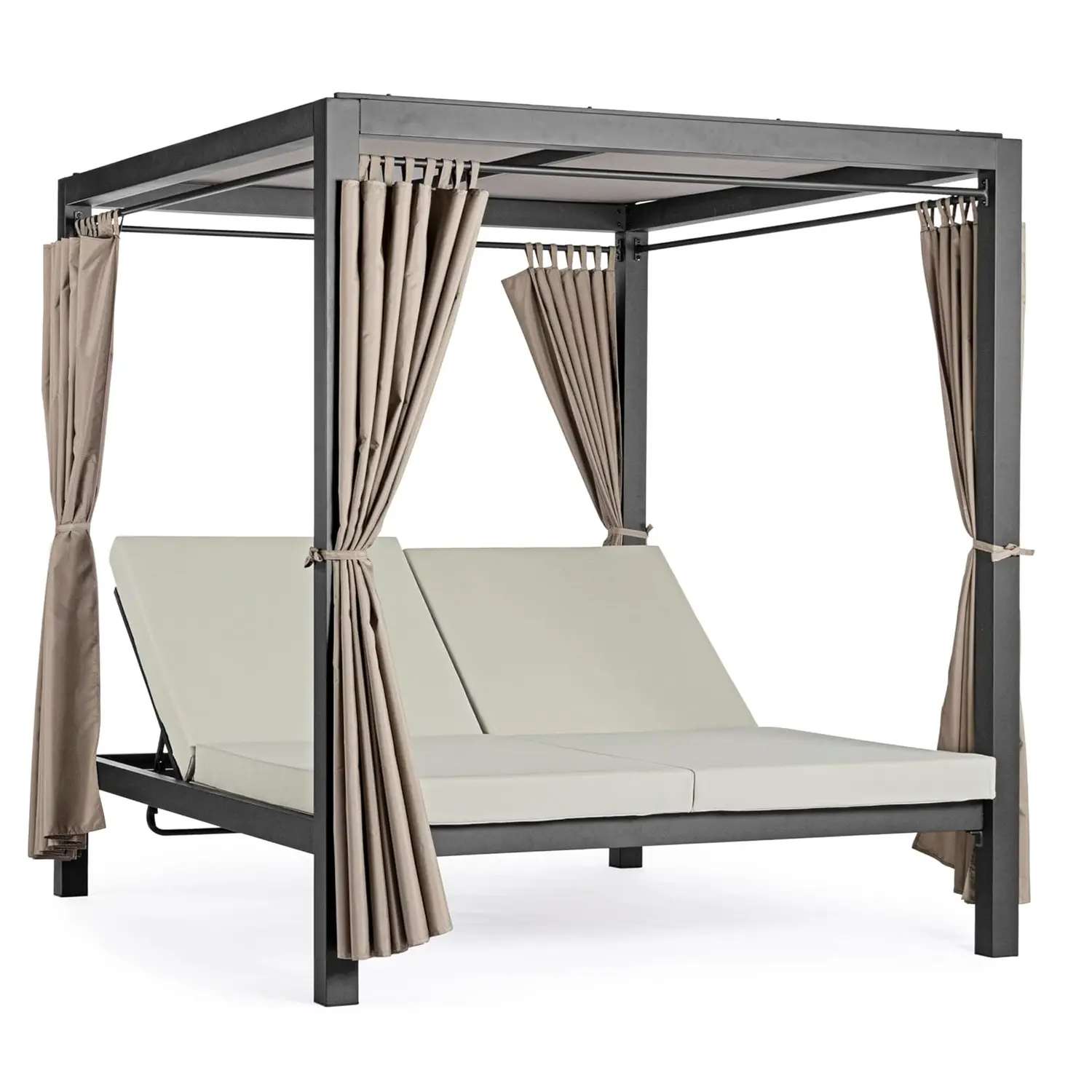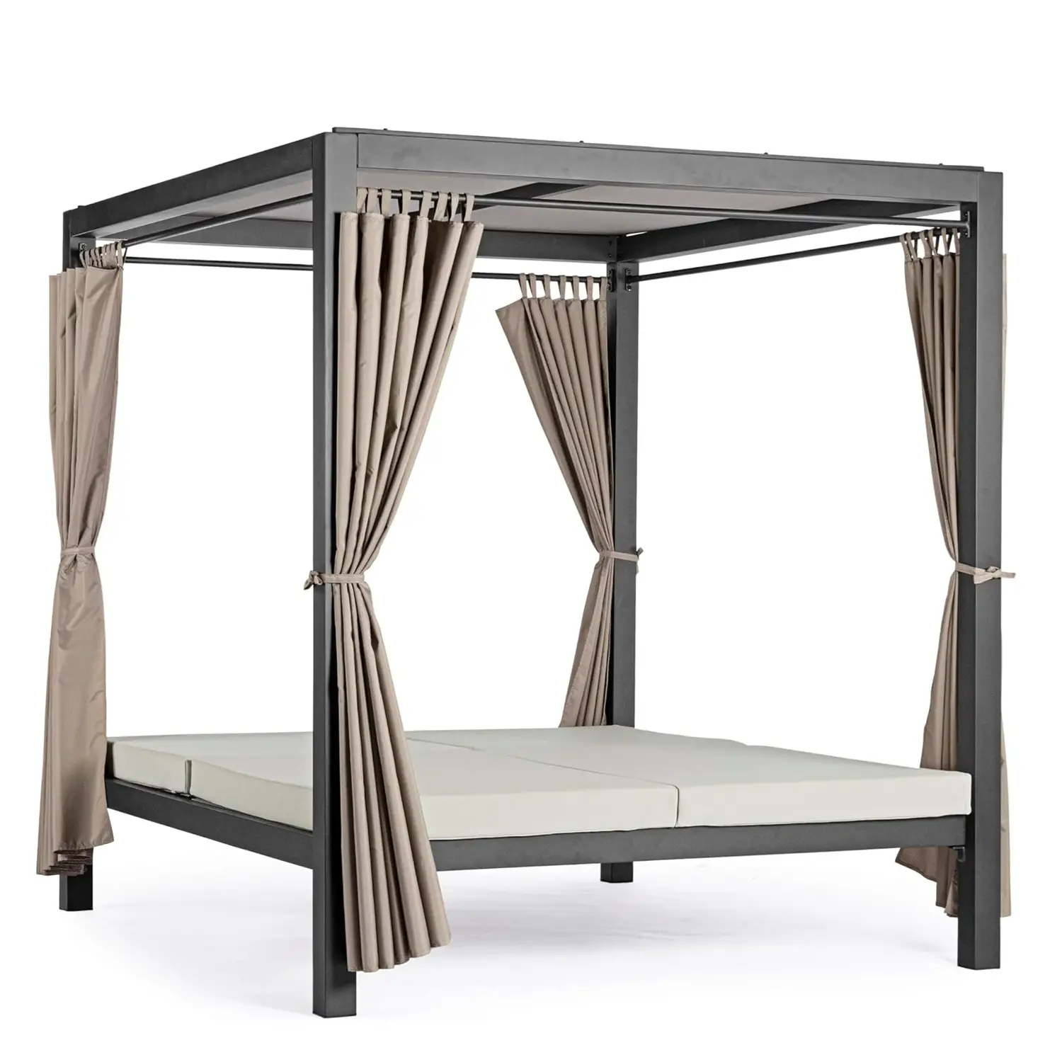 Sturdy Structure: Made of powder-coated aluminum, the Daybed Dream's structure ensures durability and resistance to the outdoor elements while maintaining its beauty over time. Sturdy 80x80mm poles effectively support the canopy canvas, creating a shaded and comfortable area.