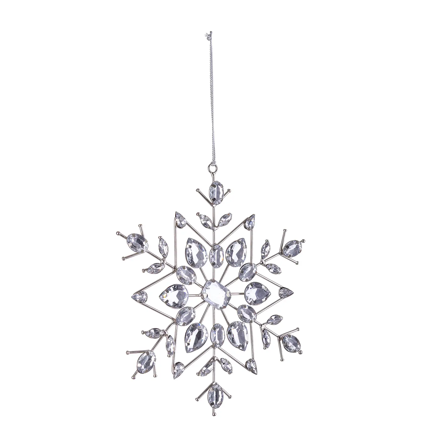 - ✅ Fiocco di neve decorativo in metallo argento con cristalli acrilici riflettenti.