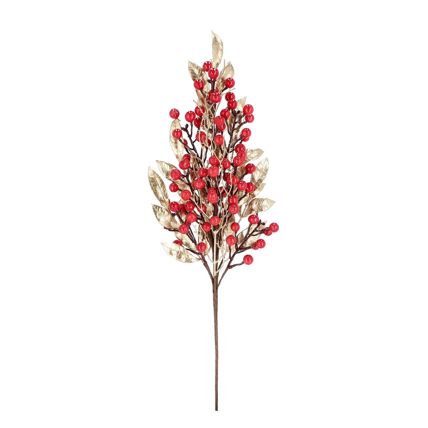 Ramo Jewell Oro Con Bacche Rosse Decorazione Natalizia 70cm