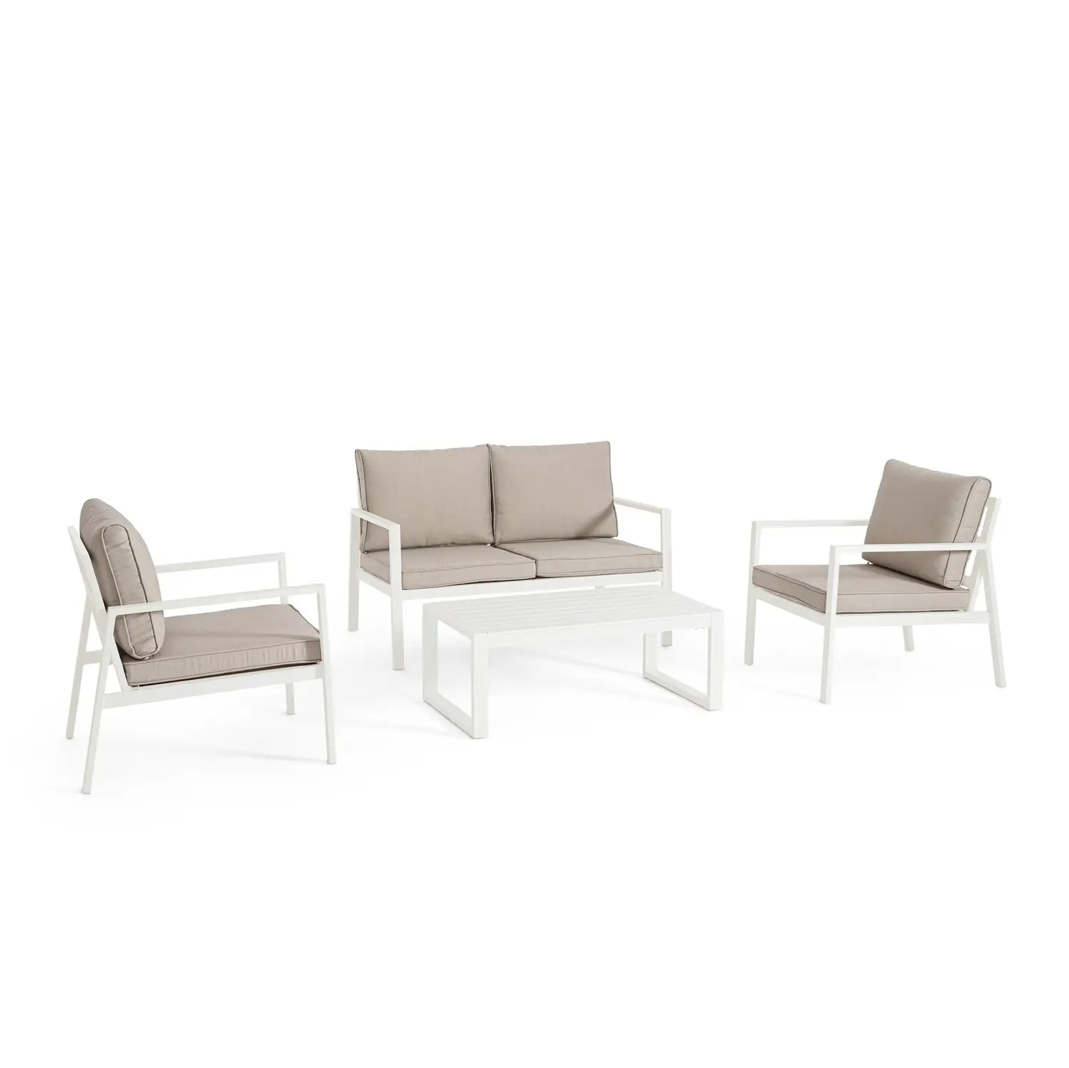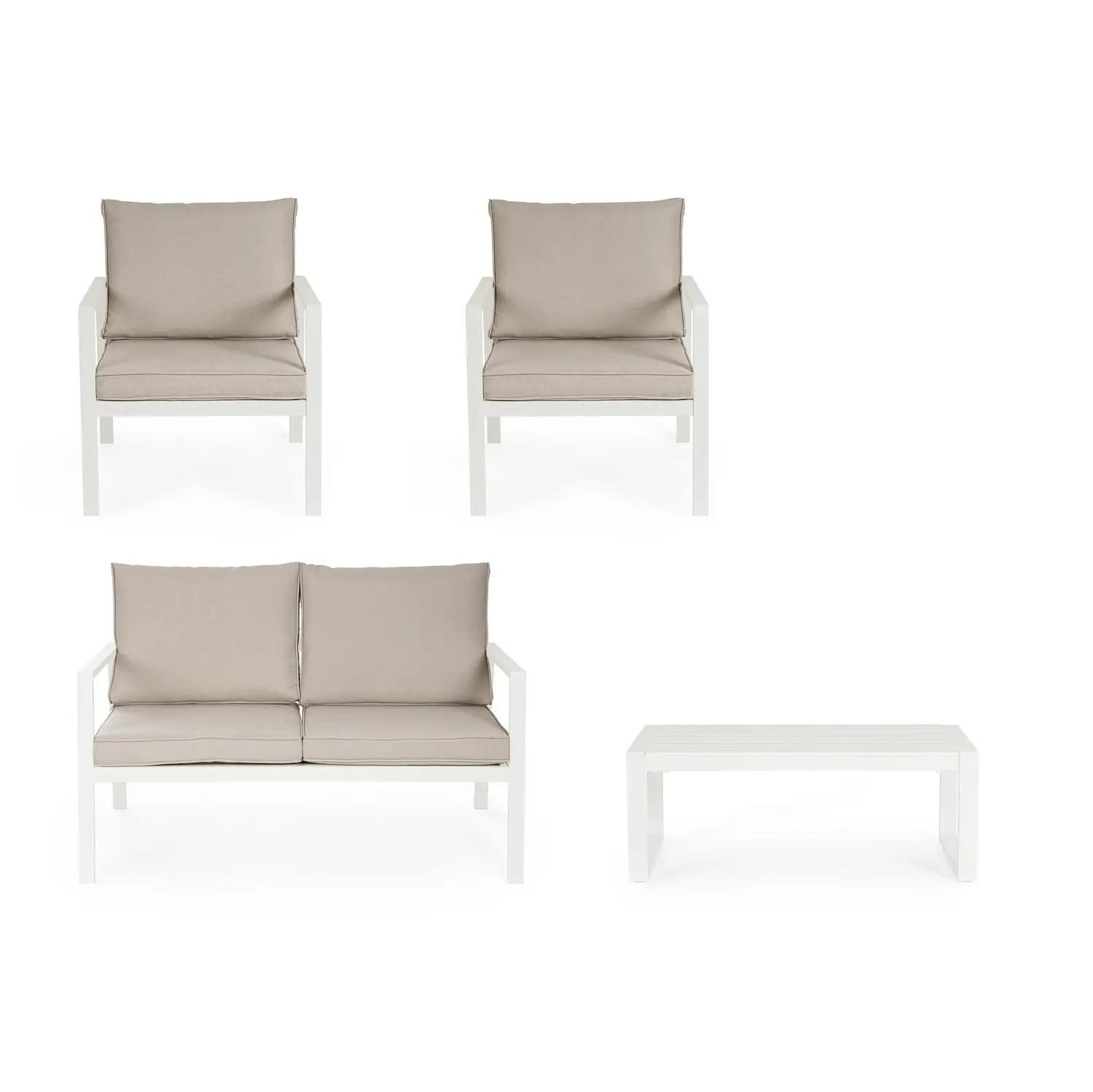 Salotto Hilde Bianco 4 Posti con Cuscini Tortora