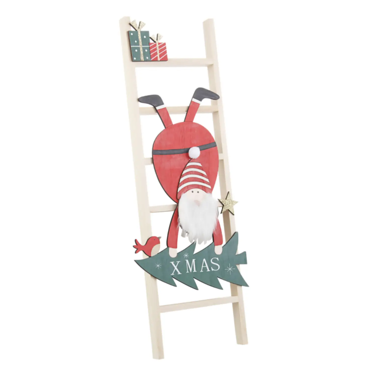 - Design unico e narrativo: Babbo Natale che sale sulla scaletta richiama la notte più magica dell’anno, mentre i rami di pino decorano la scena aggiungendo un tocco naturale e festoso.