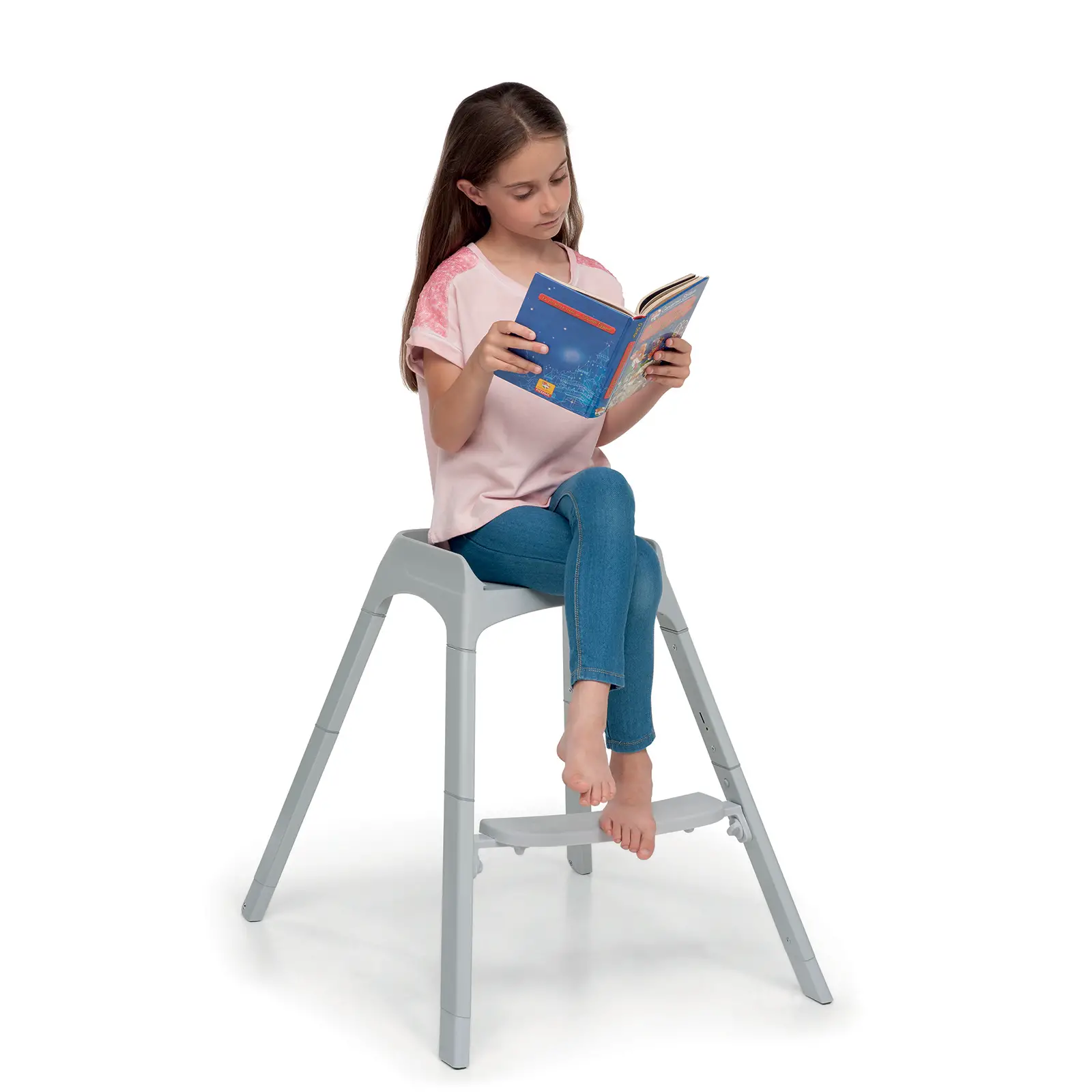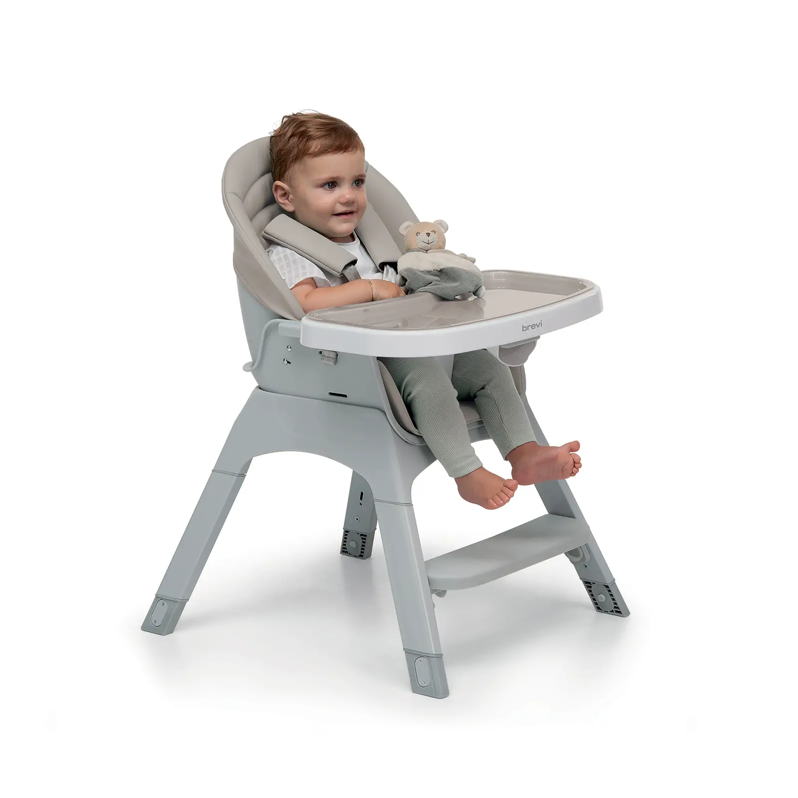 Funzioni intelligenti e comfort garantito Con schienale reclinabile, cintura di sicurezza a 5 punti, vassoio doppio regolabile e seduta in ecopelle lavabile, offre comfort e sicurezza in ogni configurazione: seggiolone, rialzo, sedia e sgabello.