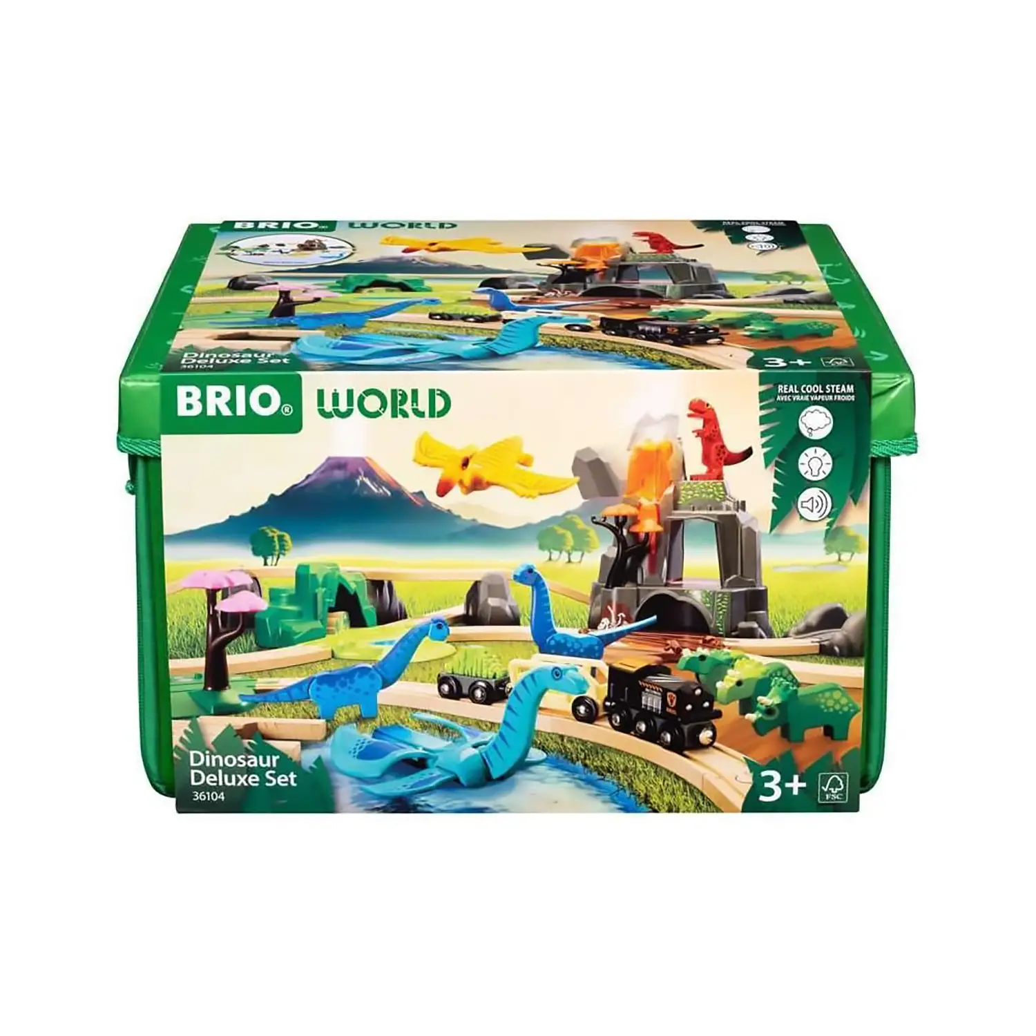 - ✅ Set ferroviario deluxe a tema dinosauri con 8 dinosauri colorati e vulcano interattivo con luci, suoni e vapore.