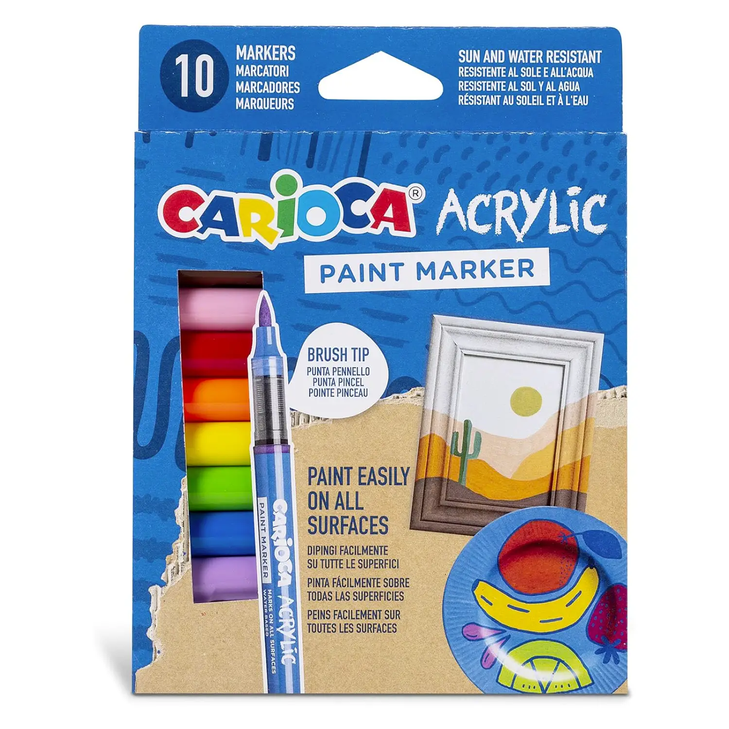 Carioca Paint Marker Acrilici – Set da 10 Pennarelli con Punta a Pennello Il set Carioca Paint Marker Acrilici comprende 10 pennarelli con punta a pennello e colori intensi, ideali per decorazioni, disegni e progetti creativi. L’inchiostro acrilico a base acqua ad alta coprenza consente di ottenere risultati brillanti e duraturi su numerose superfici.