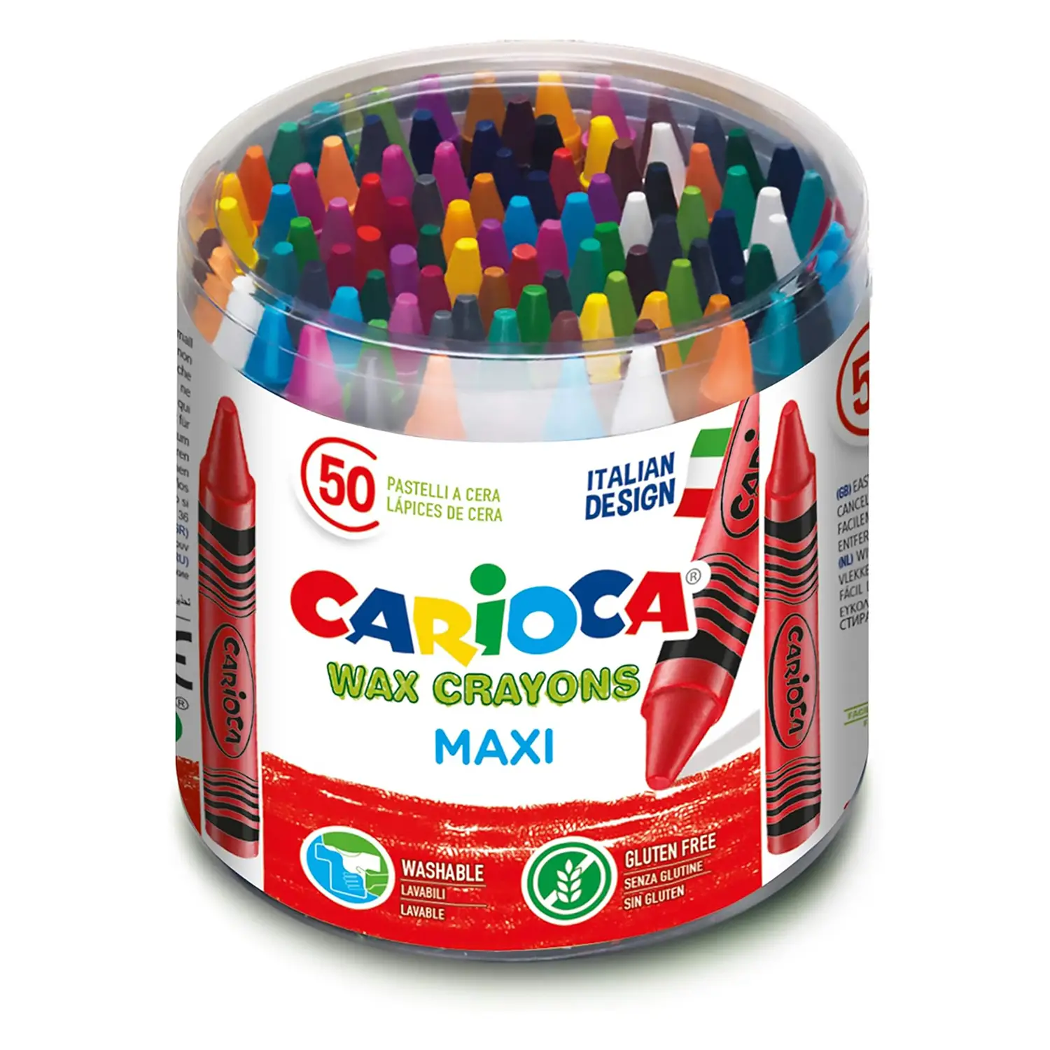 Jumbo Carioca Wax Crayons, 50-piece jar assorted in 12 colors