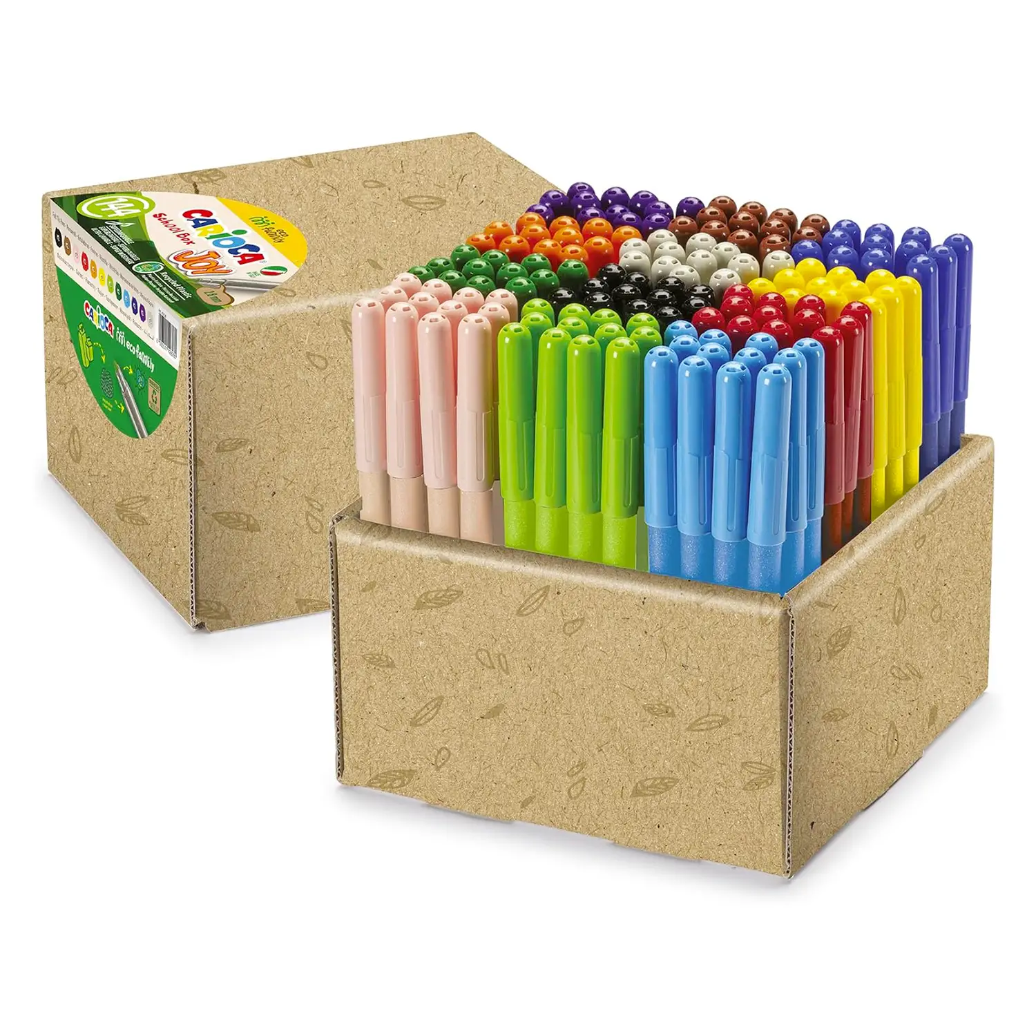 Pennarelli ecologici per scuola e creatività - La confezione CARIOCA Joy GAMMA ECO contiene 144 pennarelli super lavabili, realizzati con il 98% di plastica rigenerata. Una scelta responsabile per colorare in libertà.