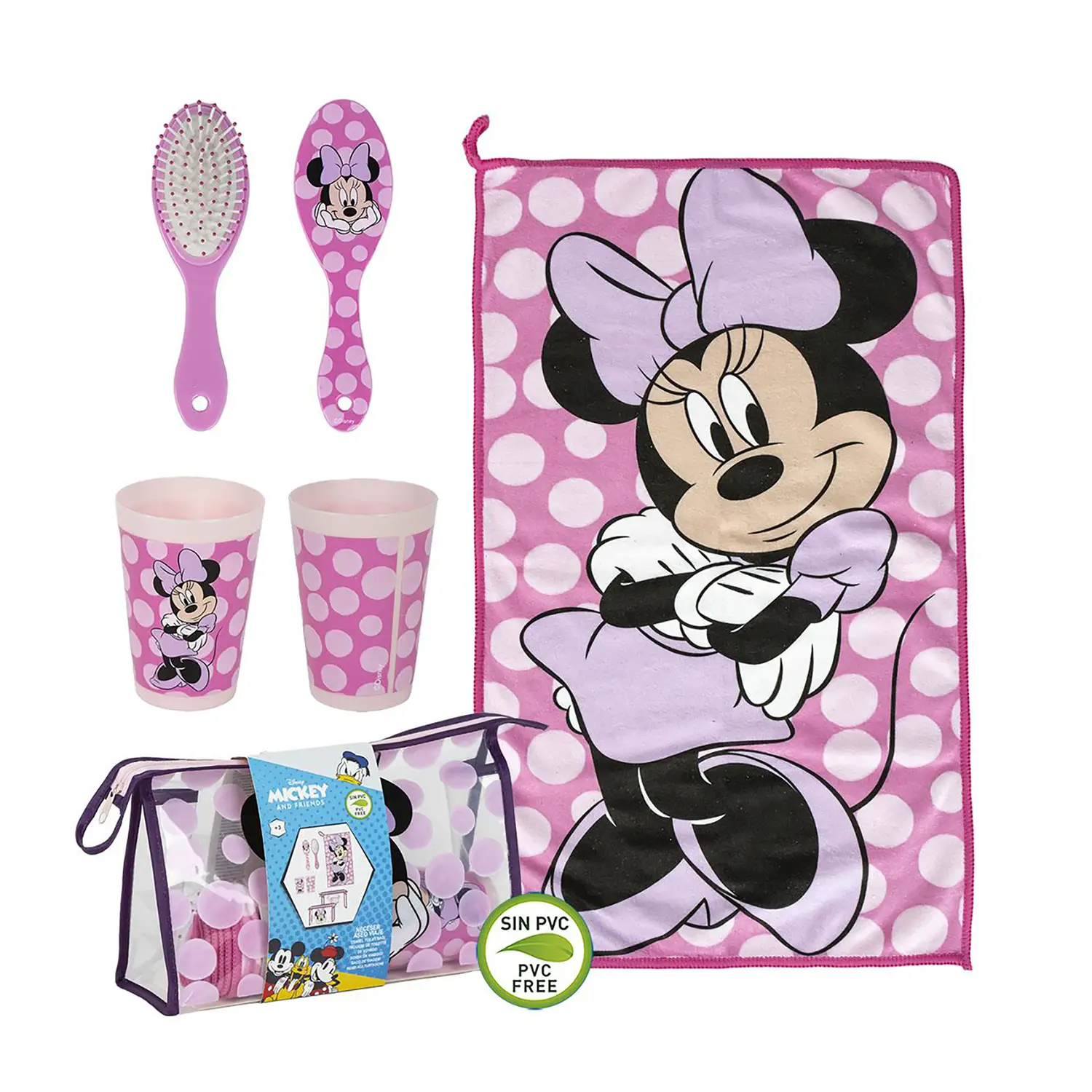 - ✅ Set completo con asciugamano in microfibra di Minnie, spazzola per capelli e bicchiere in plastica resistente.