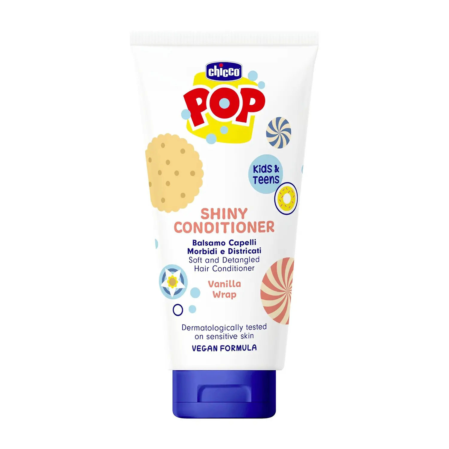 La fragranza biscottosa di vaniglia avvolge i capelli con un aroma goloso e delicato, rendendo il momento del bagno più piacevole e atteso dai più piccoli.