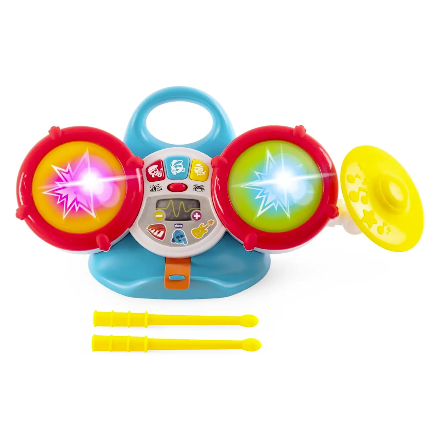 Facile da Trasportare, Pronta per Suonare Ovunque Grazie alla pratica maniglia, la batteria è facile da trasportare ovunque. Inclusi nella confezione due bacchette con punta in plastica morbida, perfette per un utilizzo sicuro e confortevole. Un regalo ideale per piccoli artisti in erba!