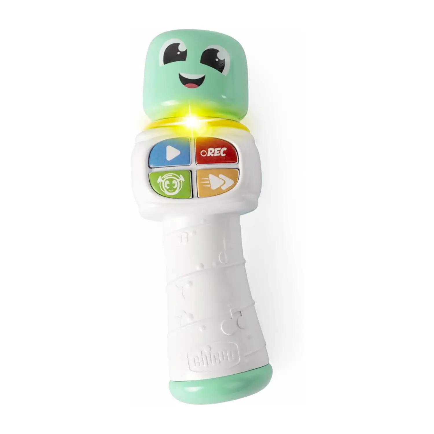 Canta e gioca a ritmo di musica Mike amplifica realmente la voce, trasformando ogni esibizione in un vero spettacolo. Con il tasto “REC”, i bambini possono registrare la propria performance e poi riascoltarla premendo “Play”. Un’esperienza unica da condividere con amici e famiglia! Effetti speciali per performance uniche Grazie ai suoi effetti sonori, Mike rende ogni gioco ancora più divertente. Il tasto verde trasforma la voce in quella di un robot, mentre il tasto giallo la velocizza creando un effetto esilarante. Un modo perfetto per stimolare la creatività!