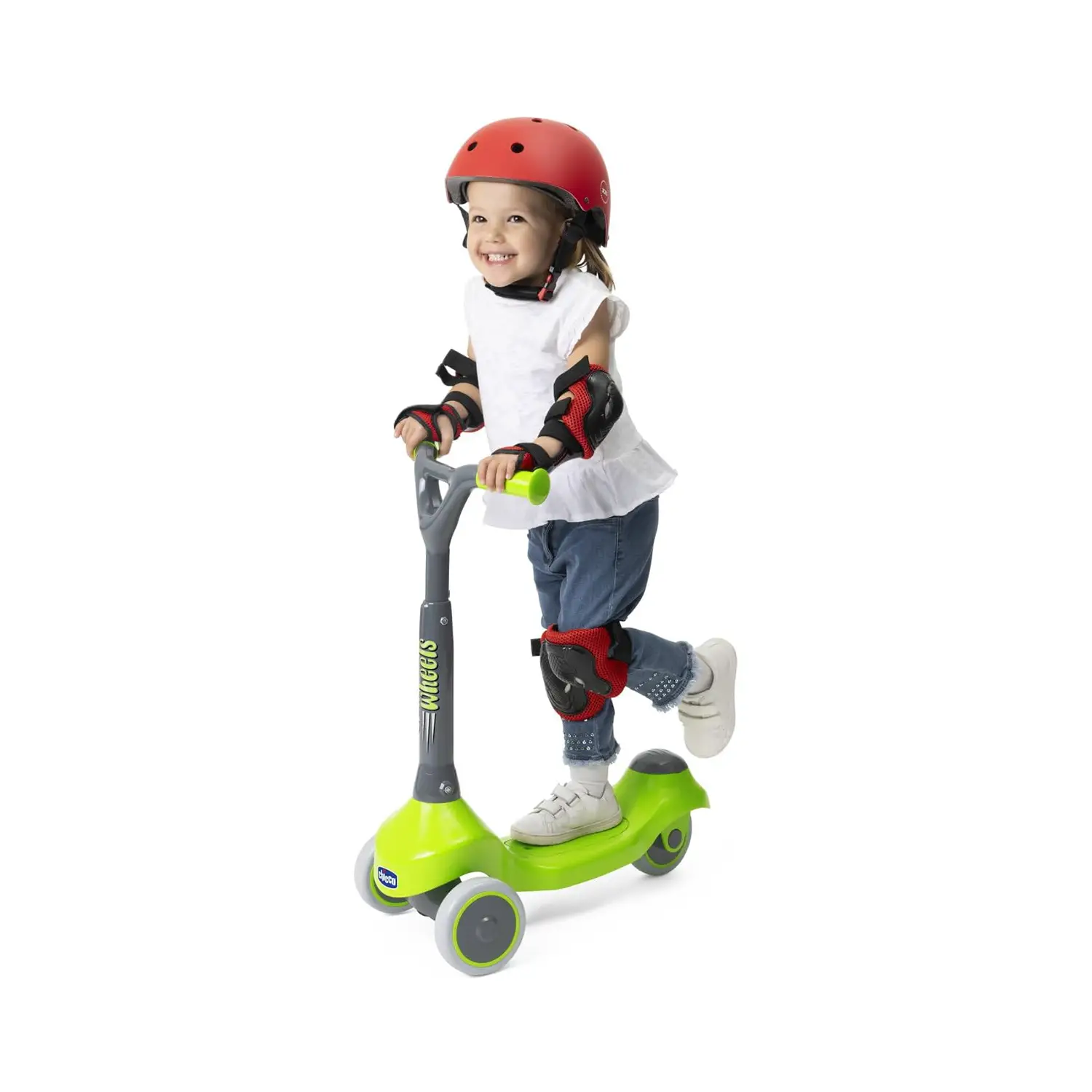A Perfect Gift for Play and Development This scooter helps improve coordination, safety in movement and sense of balance. Perfect as a gift to encourage physical activity and fun, the Chicco Green Scooter will be the ideal vehicle for fantastic adventures on wheels!