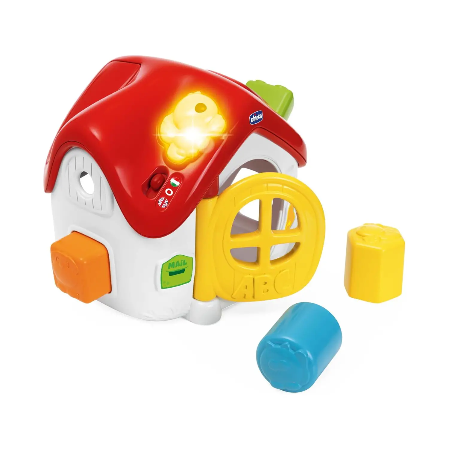 Aree di Gioco: Quattro aree diverse, tra cui tetto, porta e lati della casa, per insegnare lettere, forme, colori e animali in modo coinvolgente.