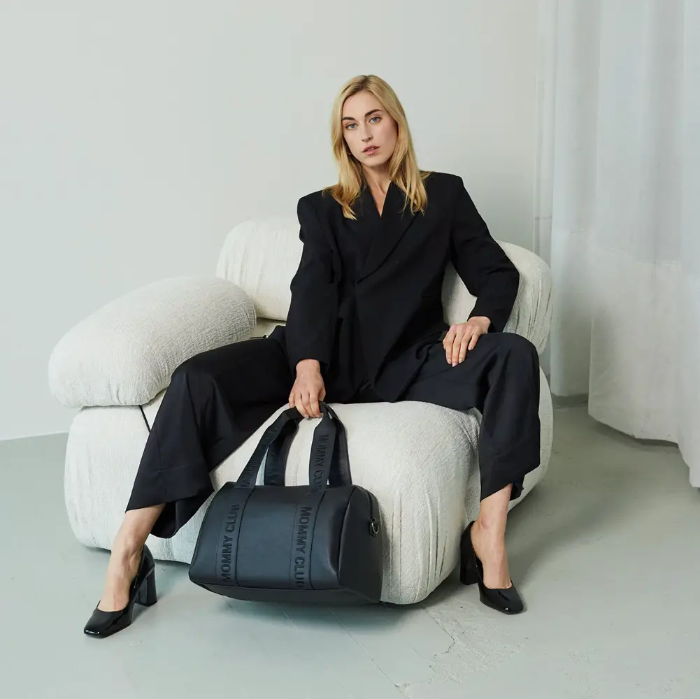 Borsa fasciatoio Mommy Club elegante Childhome Mommy Club Signature in pelle vegana nera è la borsa fasciatoio moderna progettata per mamme dinamiche. Design compatto, linee pulite e stile contemporaneo rendono questo accessorio perfetto per la vita quotidiana con il bambino.