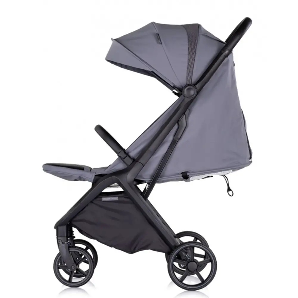 Protezione e Funzionalità – Ampia capottina impermeabile con visiera parasole, pannello di visualizzazione, rete traspirante estiva e grande cestino portaoggetti rendono il passeggino pratico, protettivo e adatto a ogni stagione.