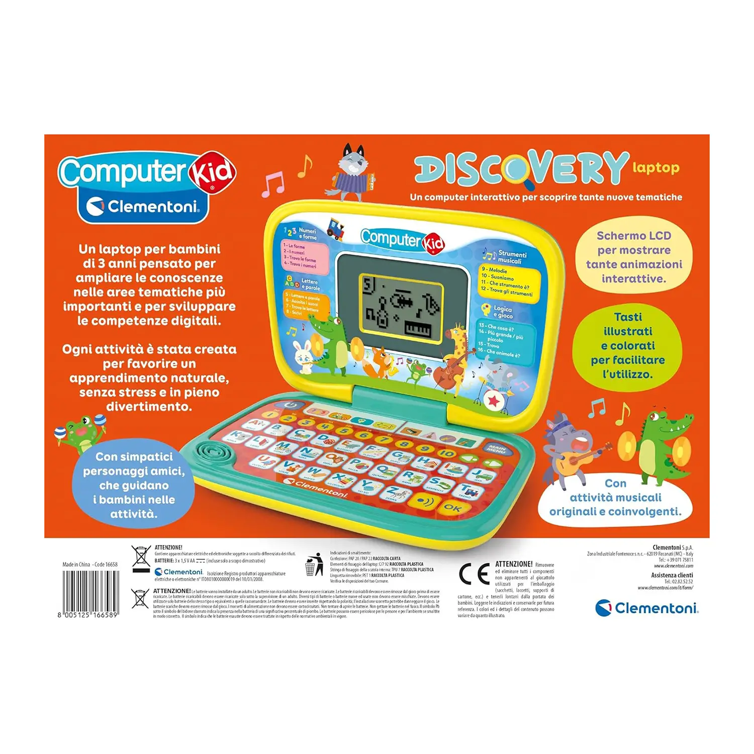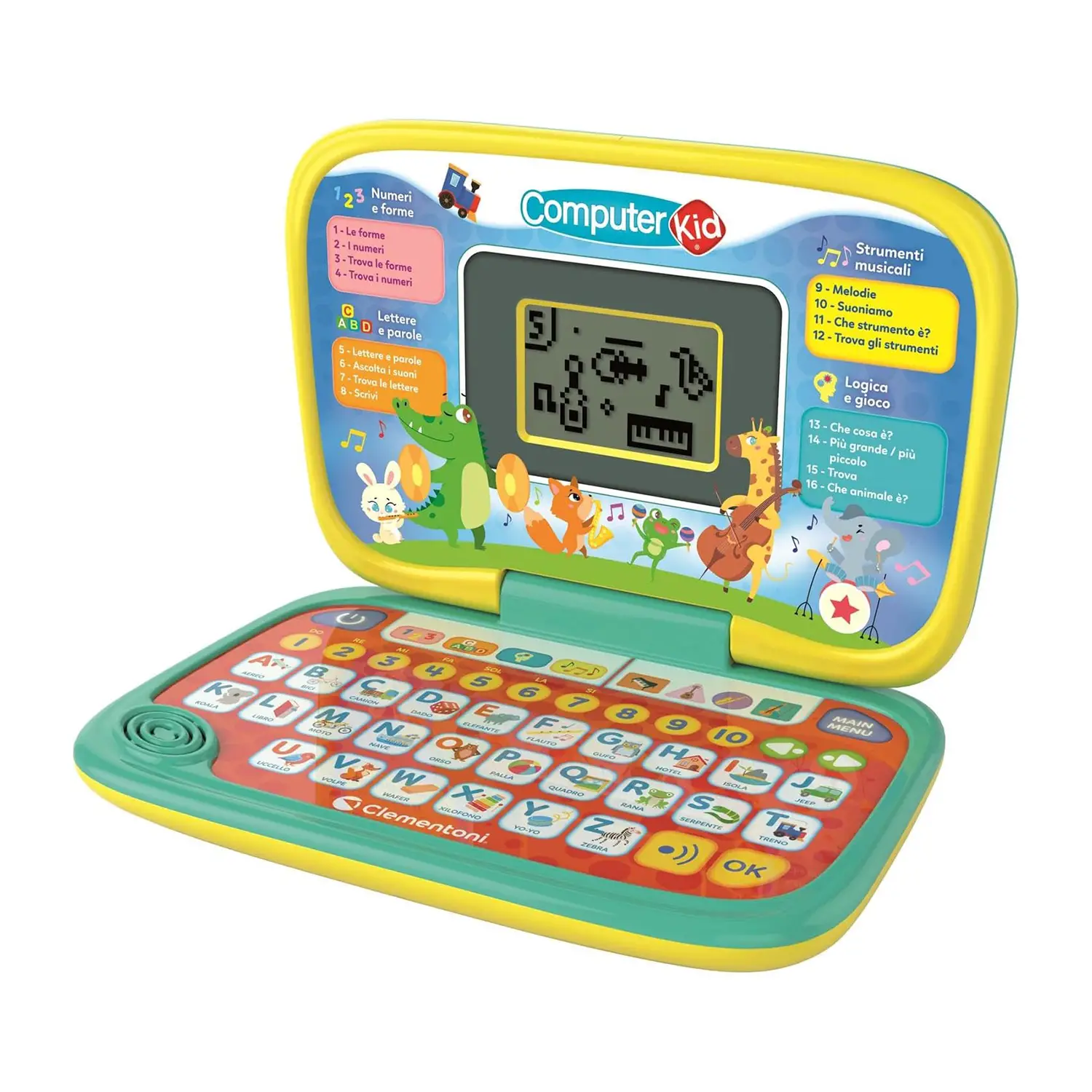 Scopri il Computer Kid Sapientino Il Computer Kid Sapientino - Discovery Laptop +3 di CLEMENTONI è un dispositivo educativo innovativo per bambini. Offre 16 attività per imparare numeri, lettere, forme, logica e musica. Apprendimento Interattivo e Divertente Questo laptop educativo stimola lo sviluppo cognitivo attraverso giochi, quiz e attività. Con il suo schermo LCD animato, rende l’apprendimento di numeri e lettere un’esperienza coinvolgente. Facile da Usare per i Bambini I bambini possono scegliere tra 16 attività premendo i tasti illustrati. Il Computer Kid Sapientino - Discovery Laptop +3 offre un apprendimento autonomo e stimolante con suoni e animazioni. Porta l’Educazione Ovunque Progettato in Italia, questo laptop è ideale per bambini dai 3 anni in su. Portatile e versatile, consente di imparare ovunque, esercitandosi in lettere, matematica, logica e musica.