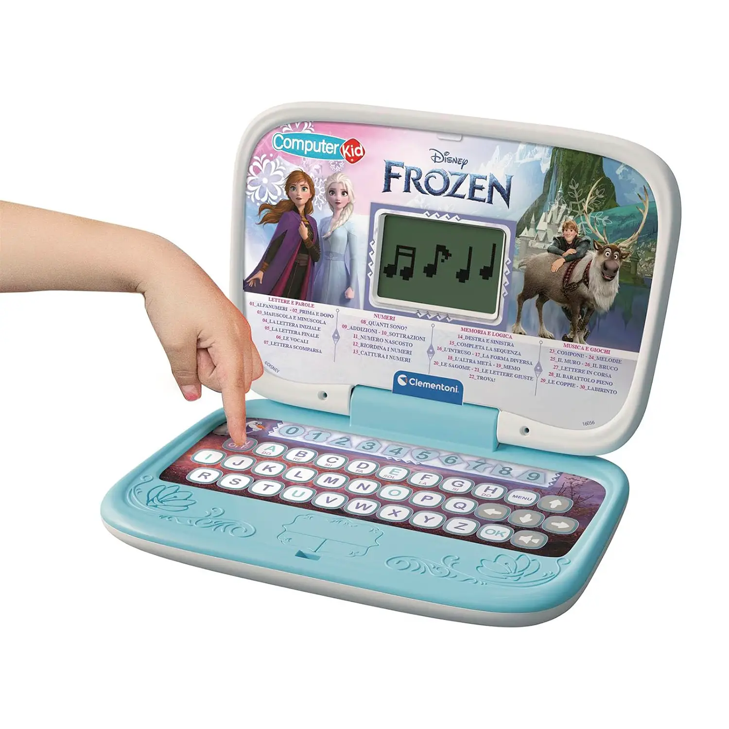 Computer Kid - Frozen Laptop 4+ Il Computer Kid - Frozen Laptop 4+ di CLEMENTONI offre 30 attività educative che combinano apprendimento e divertimento, stimolando memoria, logica, musica e creatività con le amate protagoniste di Frozen. Imparare Giocando con Frozen Laptop Grazie al Frozen Laptop, i bambini sviluppano competenze linguistiche e matematiche, migliorano logica e memoria, e si avvicinano alla musica, favorendo attenzione e creatività attraverso un gioco educativo. Come Utilizzare il Frozen Laptop I bambini esplorano 30 attività educative premendo i tasti illustrati, visualizzando contenuti su uno schermo LCD, imparando lettere, numeri, logica e musica con stimoli visivi e sonori. Caratteristiche del Frozen Laptop CLEMENTONI Progettato in Italia, il Frozen Laptop è un gioco educativo per bambini dai 4 anni, con tastiera illustrata e schermo LCD, perfetto per apprendere ovunque su lettere, numeri, logica e musica.