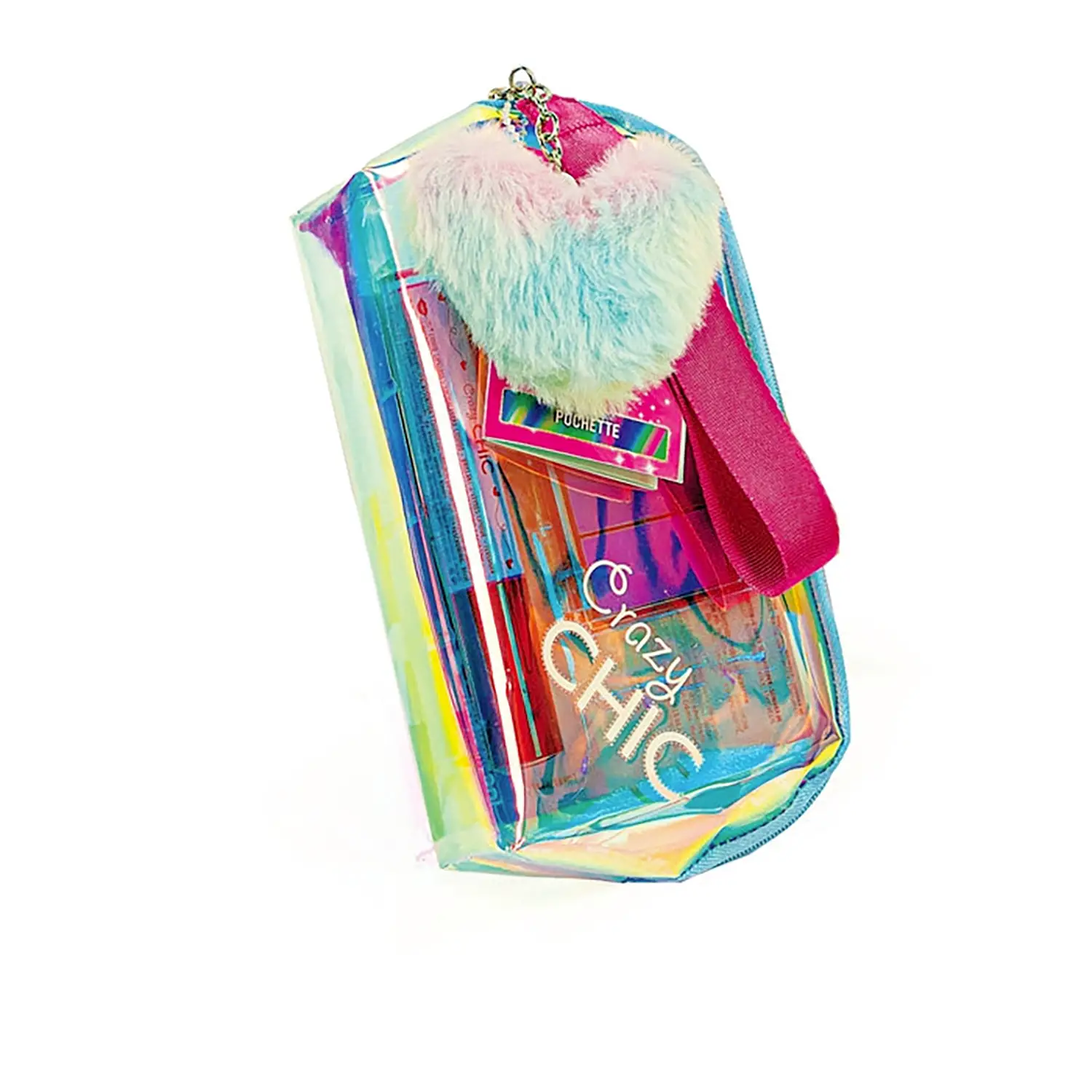 Discover the trendy clutch bag with holographic effect, perfect for little make-up lovers! Inside you'll find a bright eyeshadow palette, a lip gloss and a handy applicator to create ever-changing and fashionable looks.