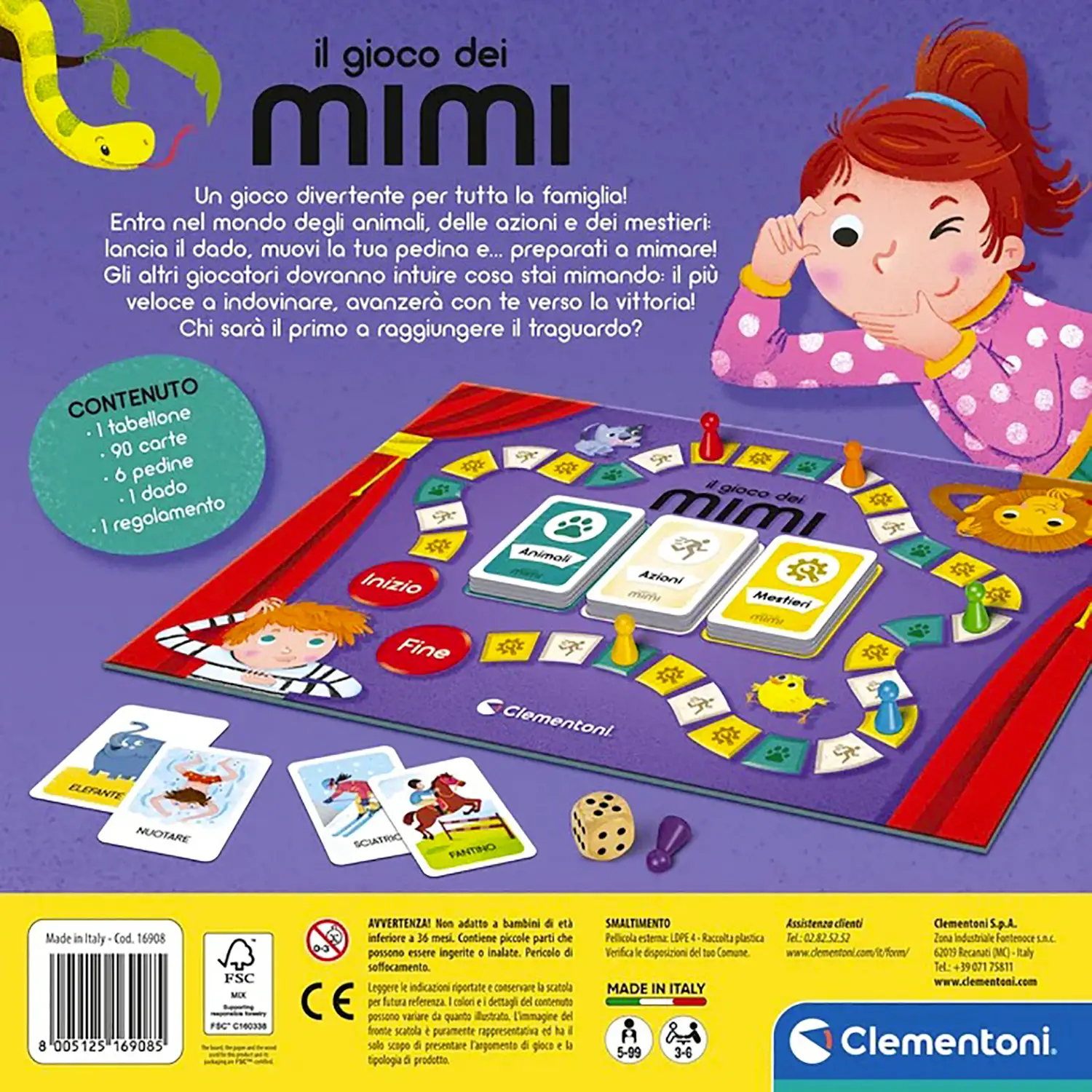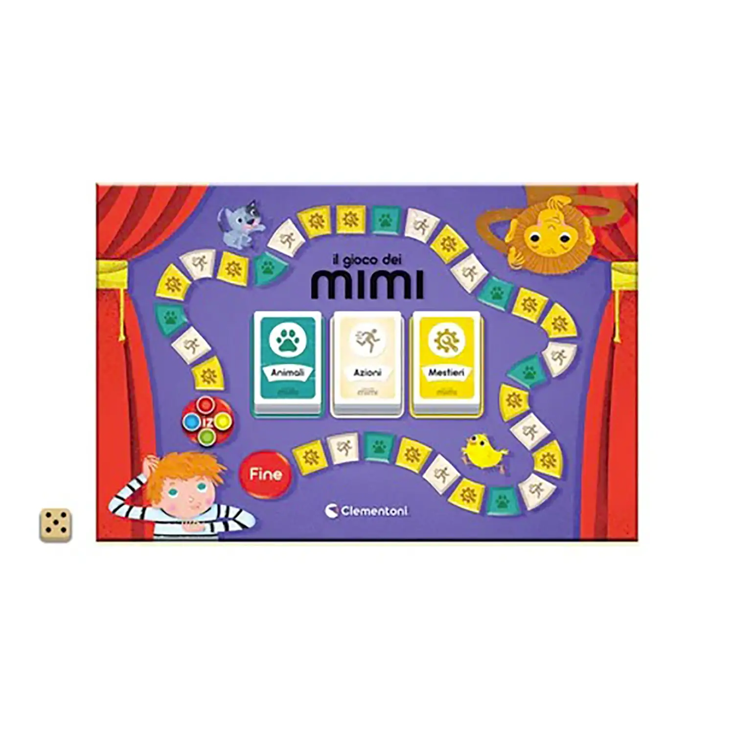 Come si Gioca A turno si lancia il dado, si pesca una carta della categoria indicata e si mima senza parlare. Se gli altri indovinano, si avanza sul tabellone. Vince chi raggiunge per primo il traguardo!