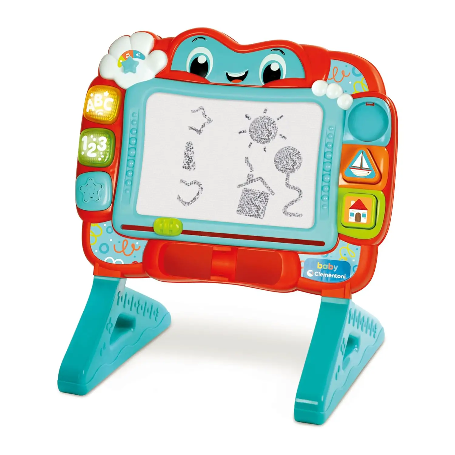La Lavagna Canta E Impara è una coloratissima lavagna magnetica che diventa la migliore amica dei bambini nei loro primi tentativi di disegno.