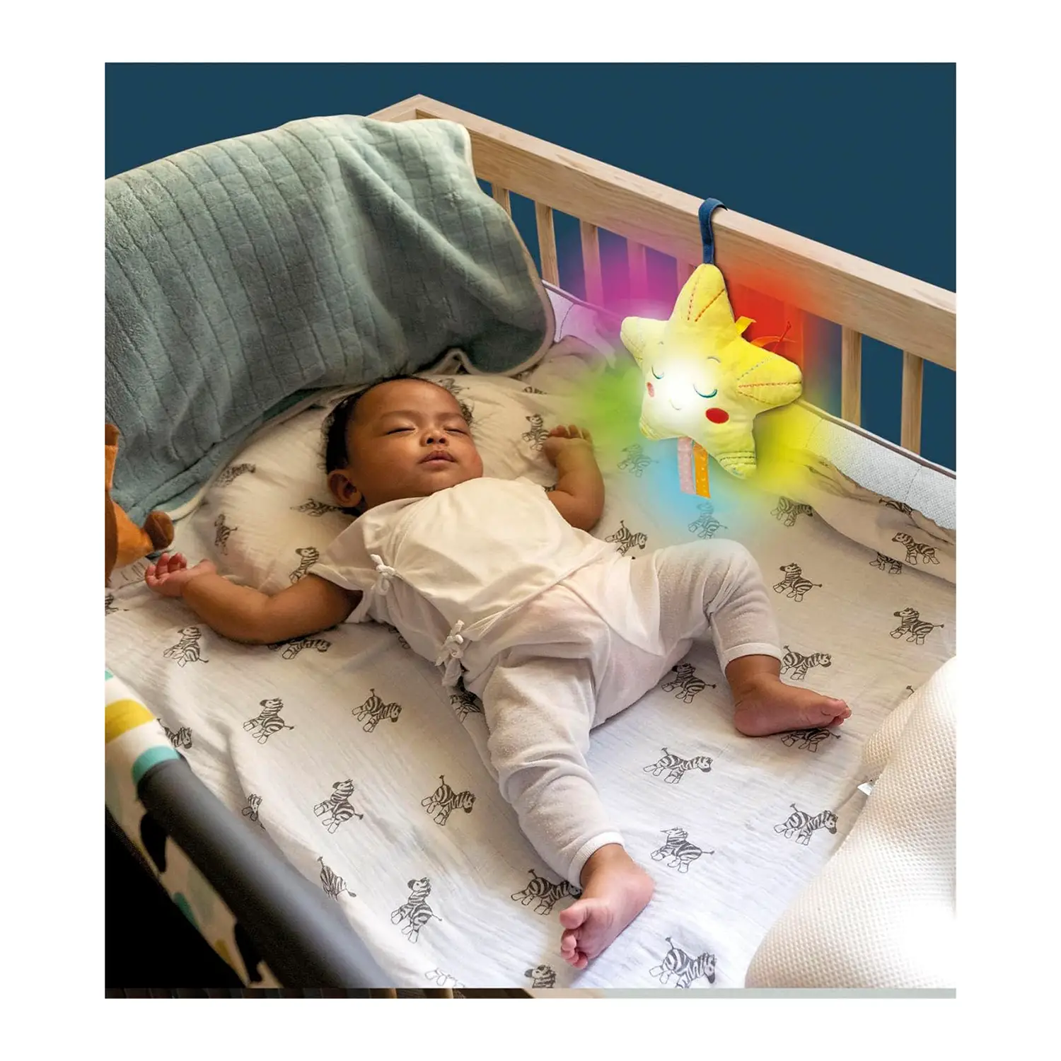 Suoni Bianchi e Melodie Rilassanti Dotata di suoni bianchi e melodie delicate, questa stella musicale per neonati aiuta a calmare e accompagnare il sonno. Stimola l’udito con suoni studiati per favorire il rilassamento nei primi mesi di vita.