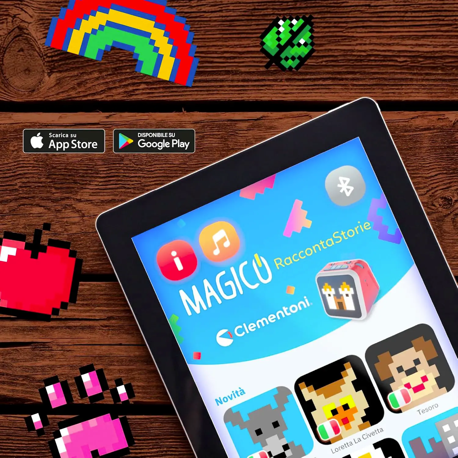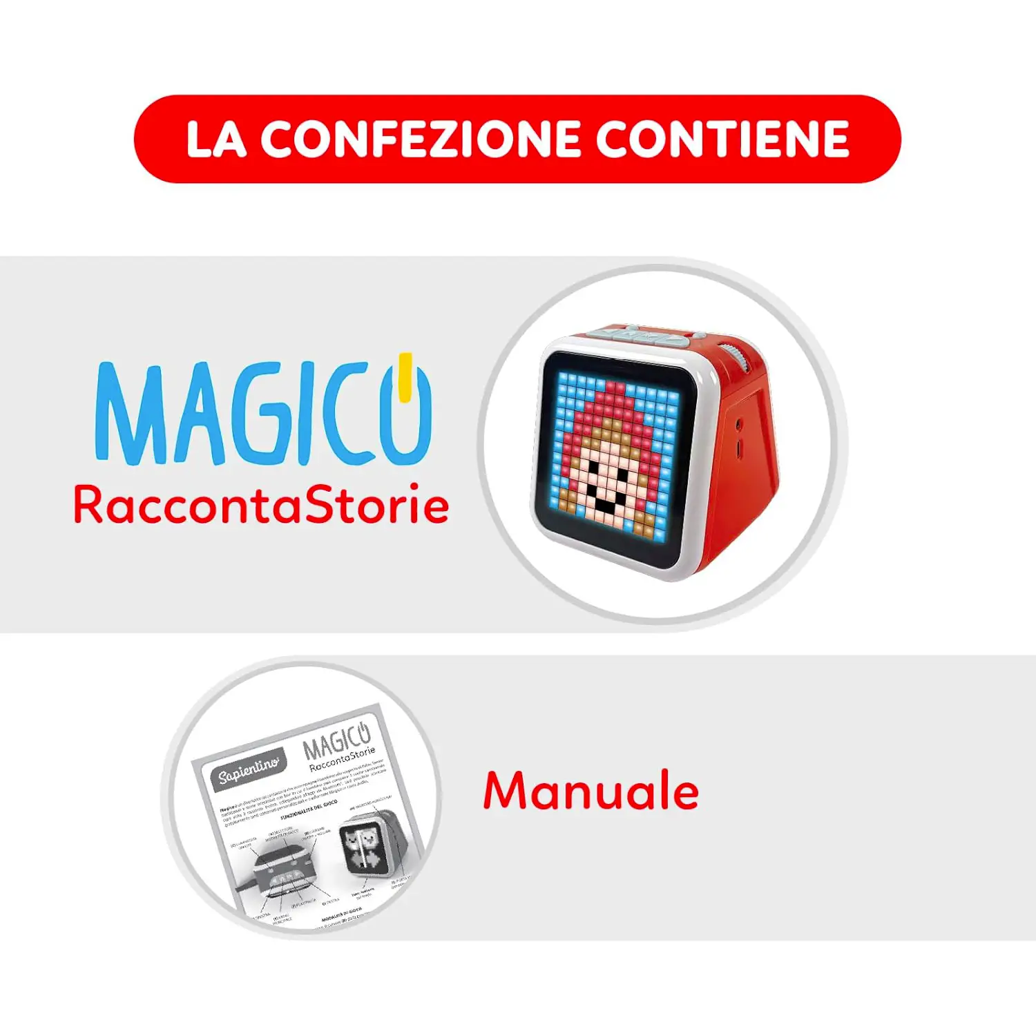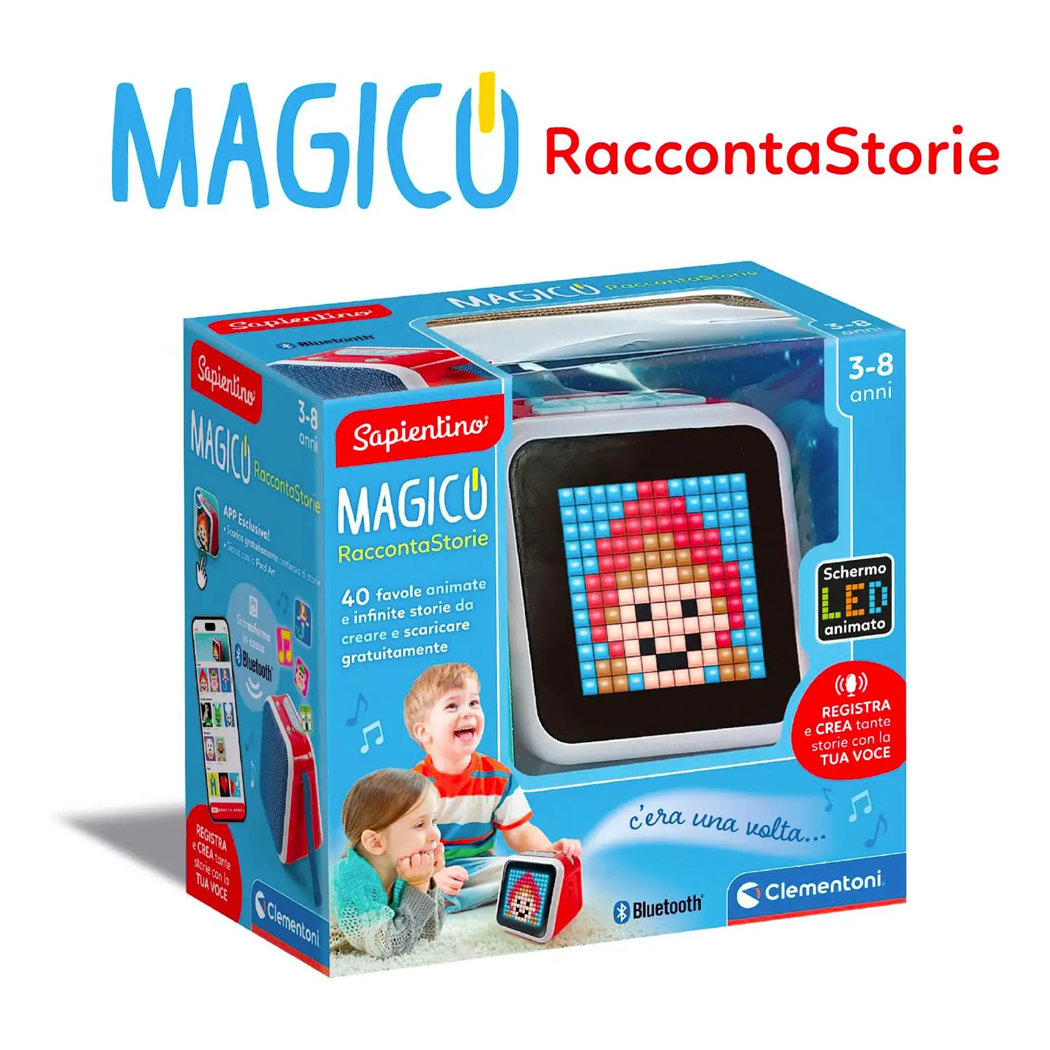 Scopri il Sapientino Magico Raccontastorie Il Sapientino Magico Raccontastorie di CLEMENTONI offre tre modalità di gioco: storie classiche, avventure interattive e racconti personalizzati. Perfetto per stimolare creatività e immaginazione nei bambini. Imparare Giocando con Sapientino Con contenuti approvati da psicologi, il Sapientino Magico Raccontastorie sviluppa il linguaggio dei piccoli. Una risorsa educativa che rende l’apprendimento un’esperienza divertente e coinvolgente. Modalità di Gioco Uniche Offre 30 storie classiche e 10 avventure originali. Personalizza i racconti con le voci di mamma e papà. Trasformalo in una cassa Bluetooth per ascoltare musica. Contenuto Ricco e Interattivo Progettato in Italia, il Sapientino Magico Raccontastorie è adatto a bambini dai 3 agli 8 anni. Include app gratuita per scaricare storie aggiuntive e accessori pratici come laccetto e ingresso cuffie.