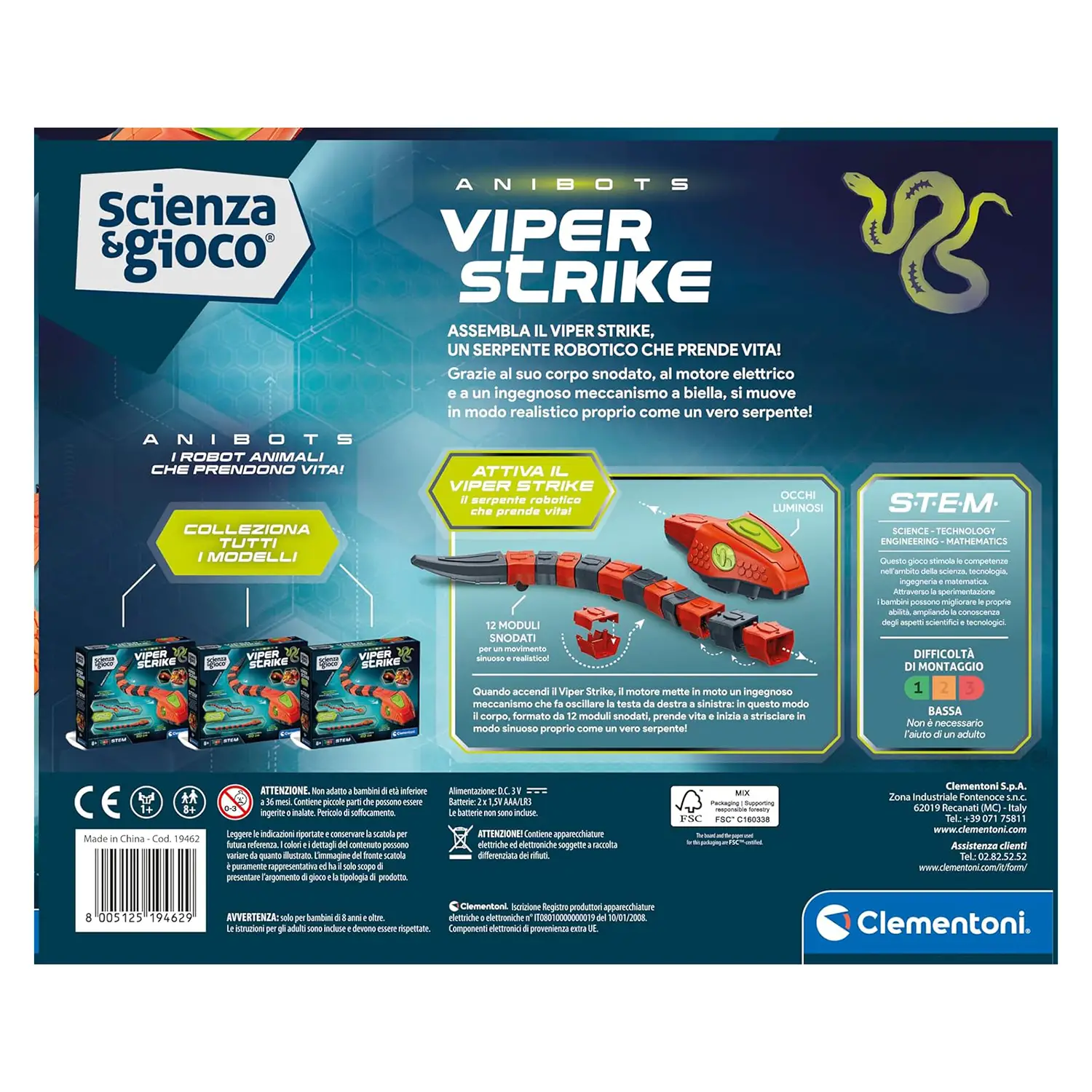 Scienza & Gioco – Viper Strike Un robot serpente da costruire che si muove proprio come un vero rettile, per un’esperienza di gioco interattiva e sorprendente. Perfetto per bambini dagli 8 anni in su che amano animali e tecnologia.